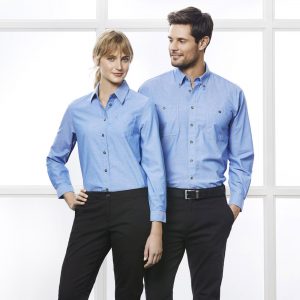 Ladies Wrinkle Free Chambray Long Sleeve Shirt