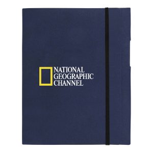- Other features include a blank black ink pen made from recycled paper and an elastic band to keep the notebook closed.