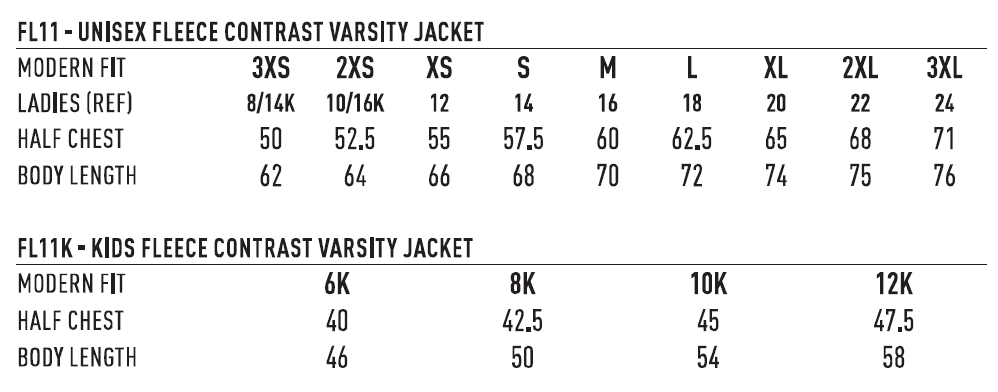 FL11 | FL11K Letterman Fleece Contrast Varsity Jacket