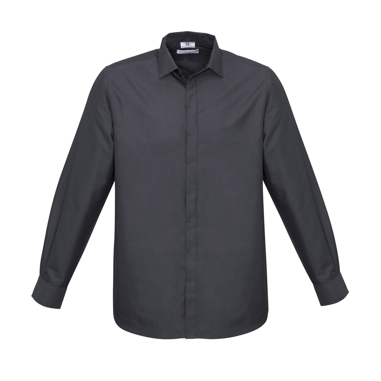 Concealed button down collar and twin back shoulder pleats with curved hem