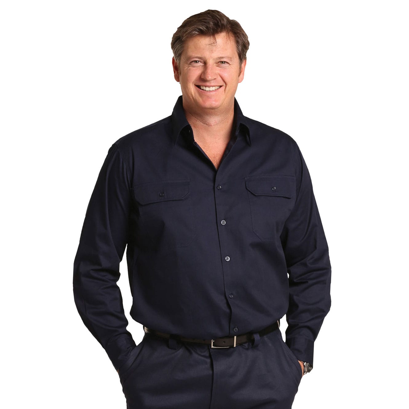 Mens Cool-Breeze Cotton Twill Long Sleeve Work Shirt