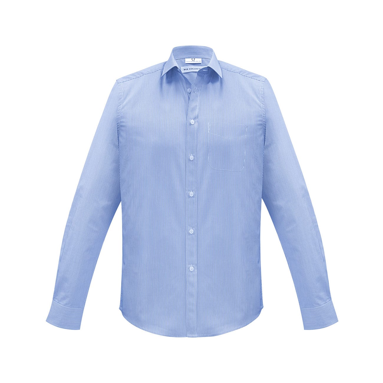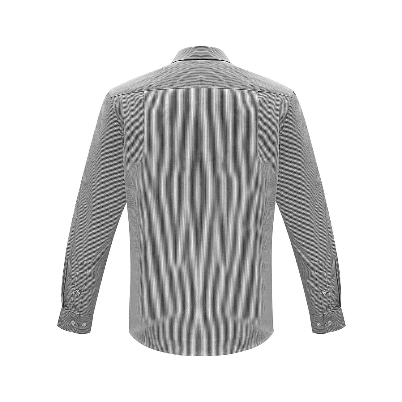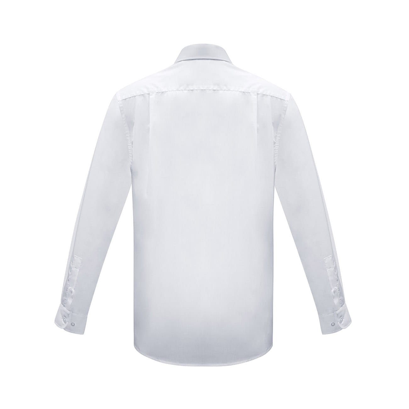 Modern collar, chest pocket, twin back pleats and adjustable cuff