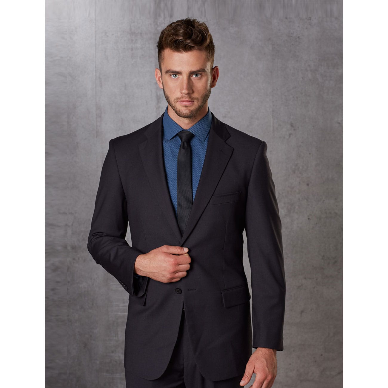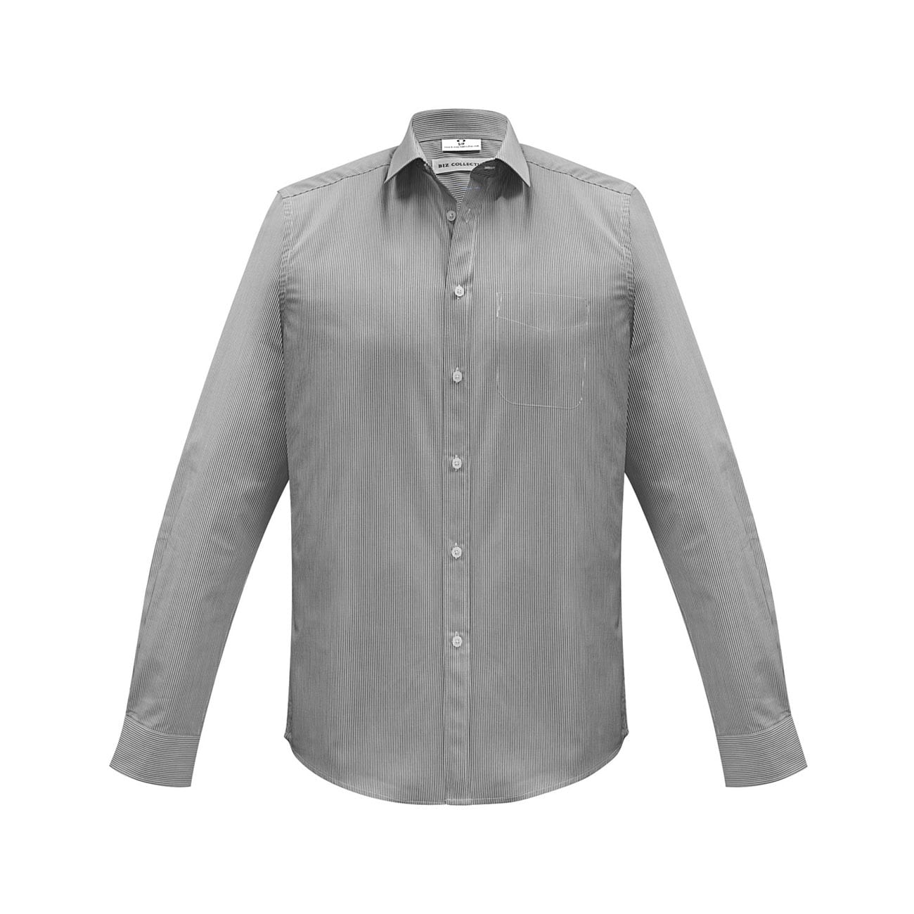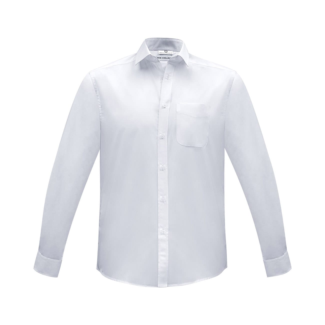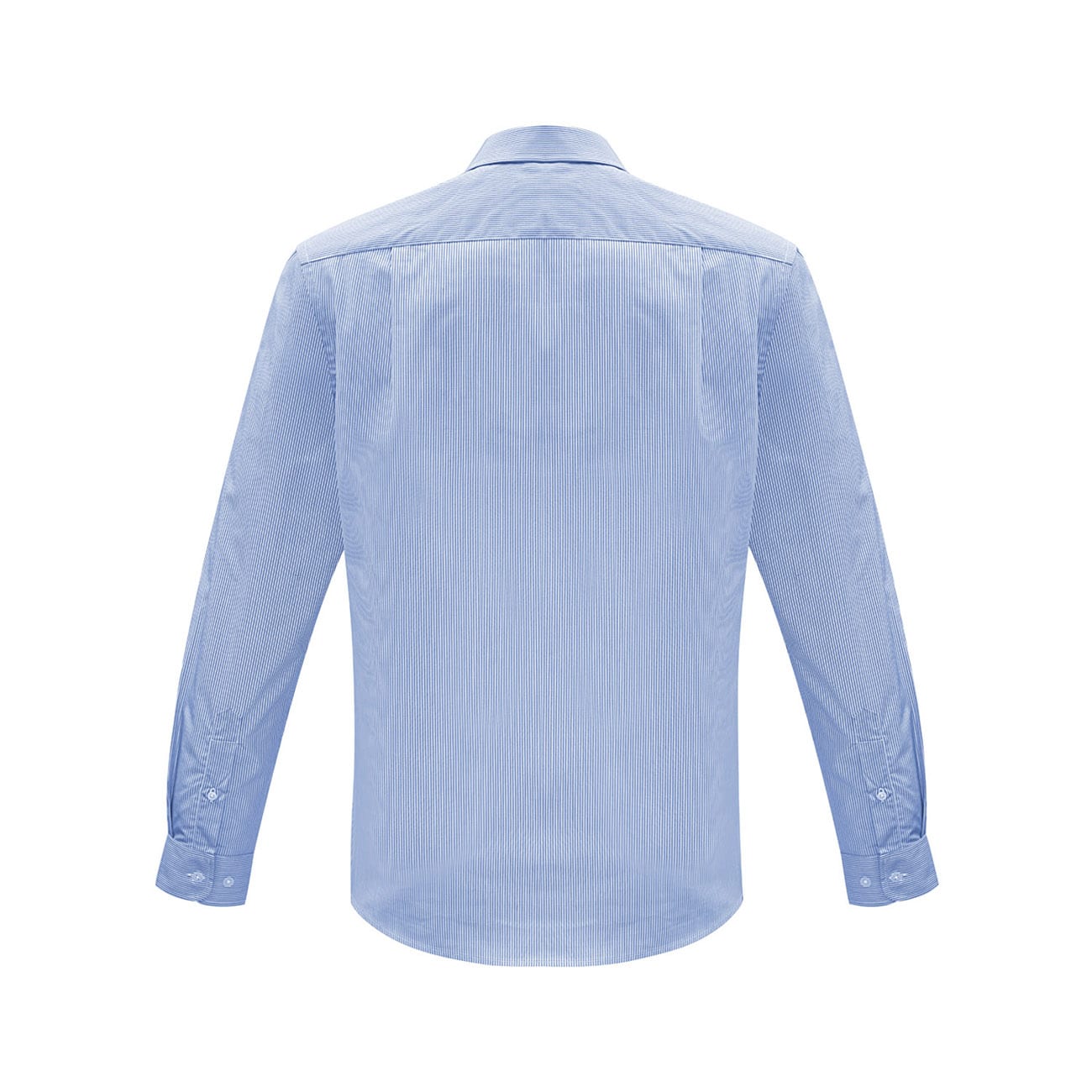 Modern collar, chest pocket, twin back pleats and adjustable cuff