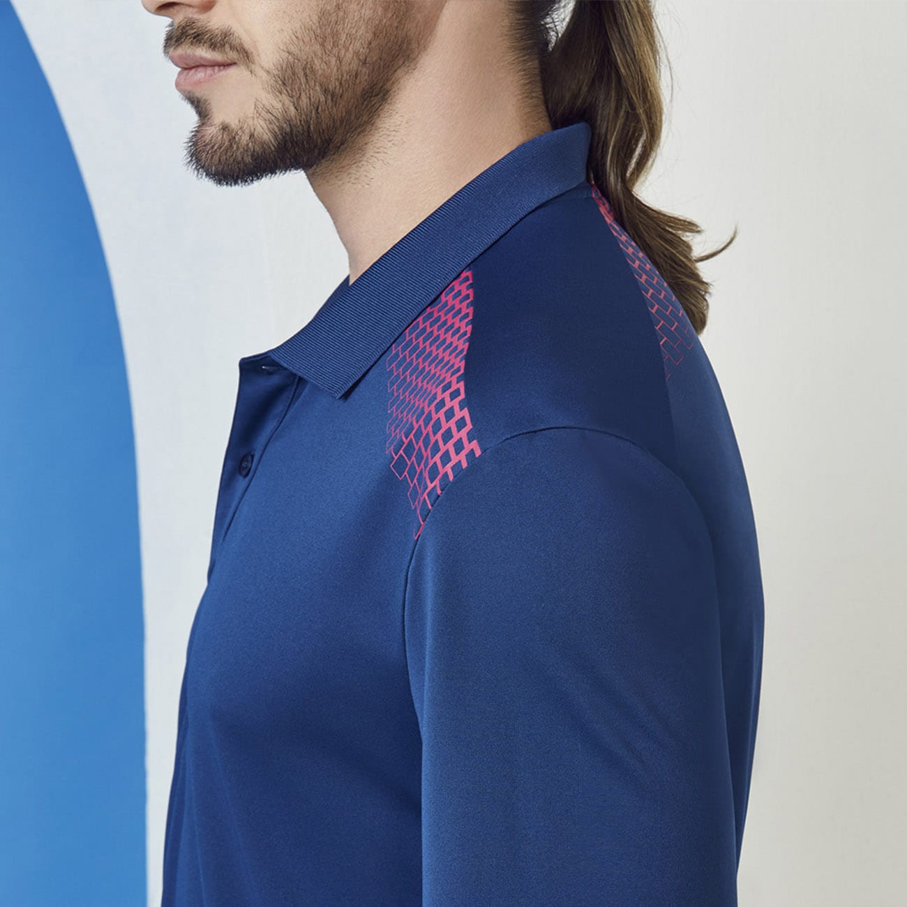 Dynamic hexagonal print feature on shoulder and back elevates your logo