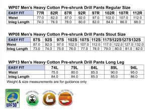 WP07/WP08 /WP13 Mens Heavy Cotton Drill Pre-Shrunk Cargo Work Pants