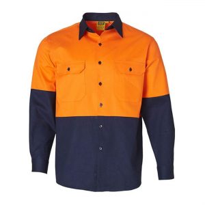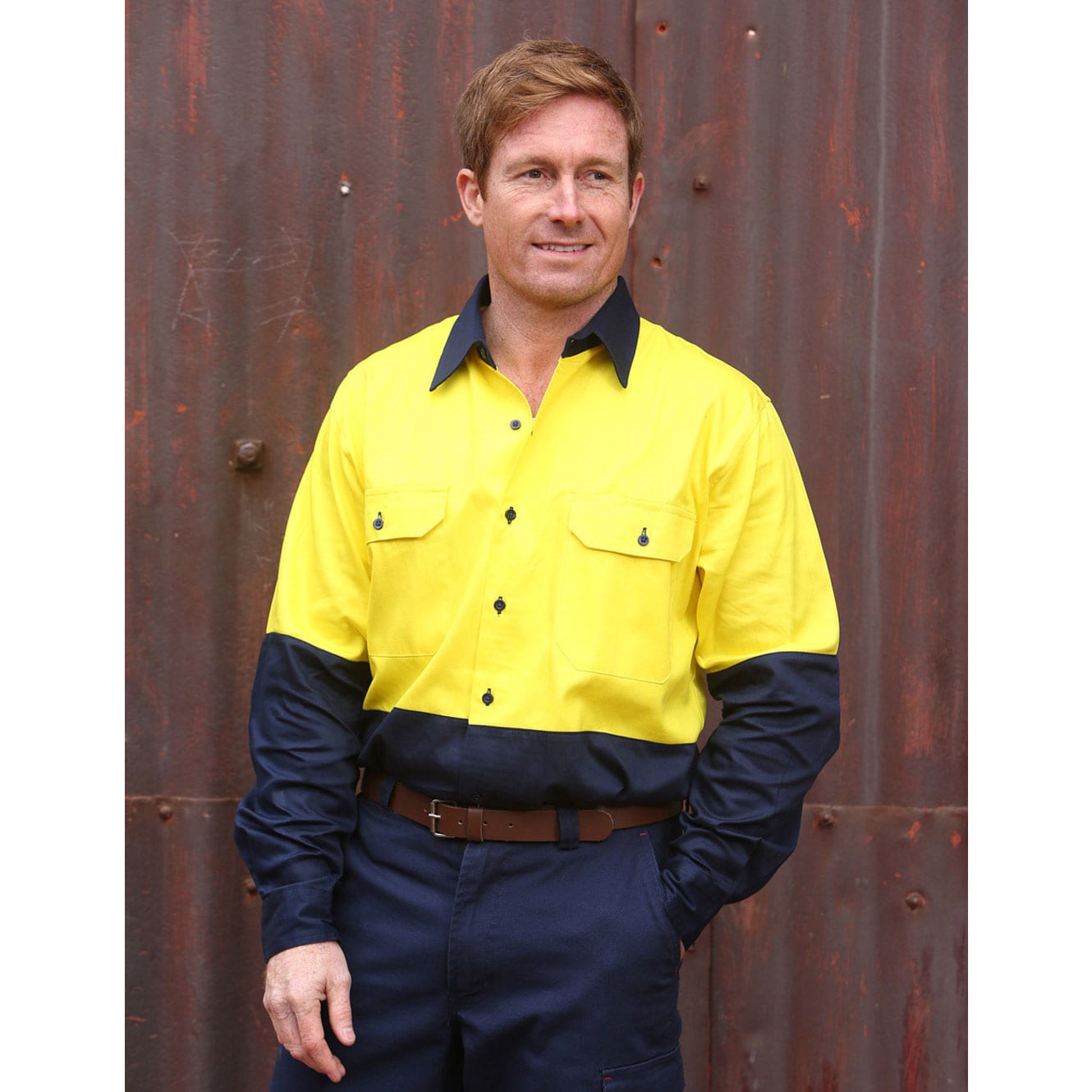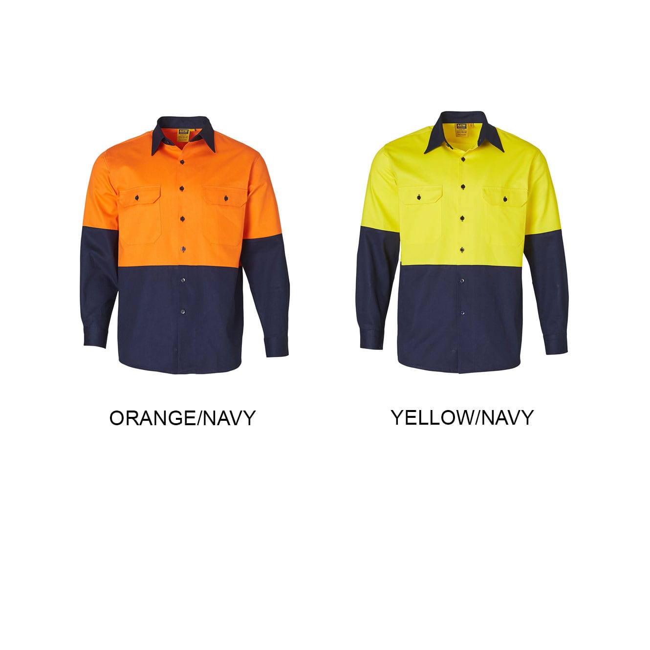 Mens Hi-Vis Cotton Drill Long Sleeve Safety Shirt