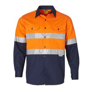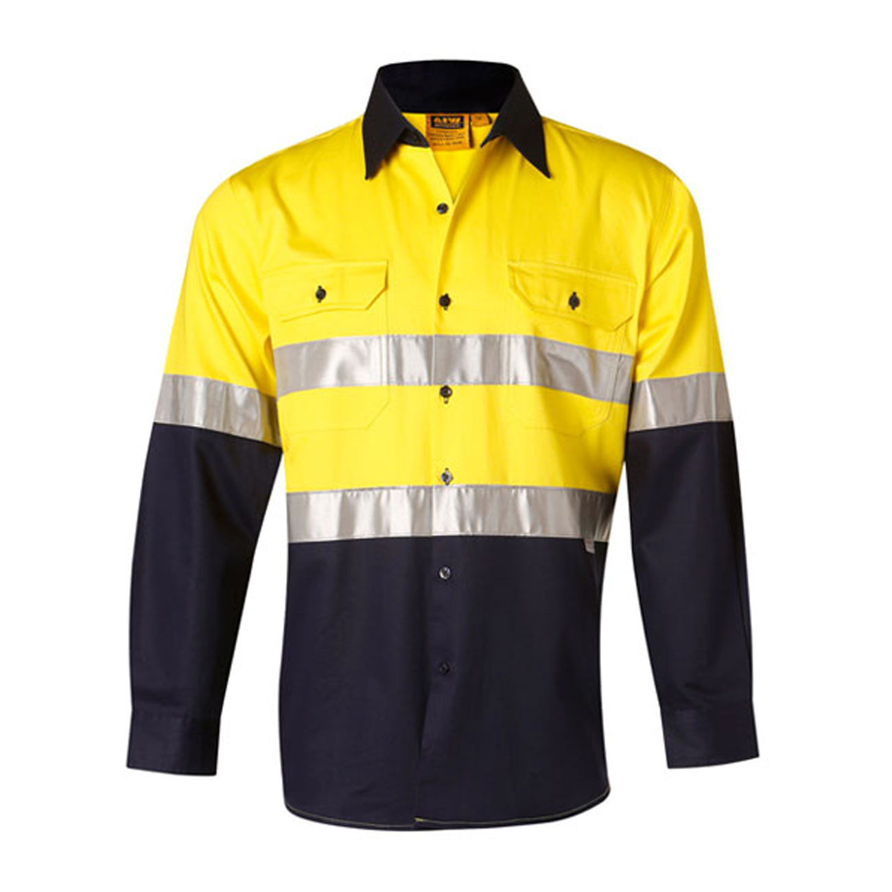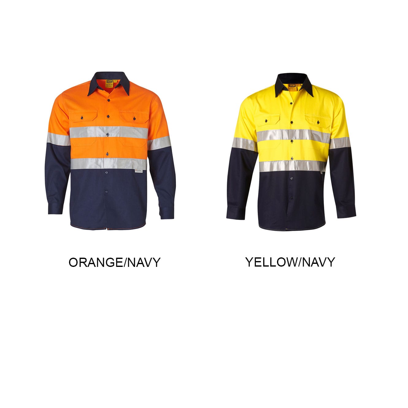 Mens Hi-Vis Cotton Drill Long Sleeve Safety Shirt With 3M Scotchlitetm Reflective Tapes