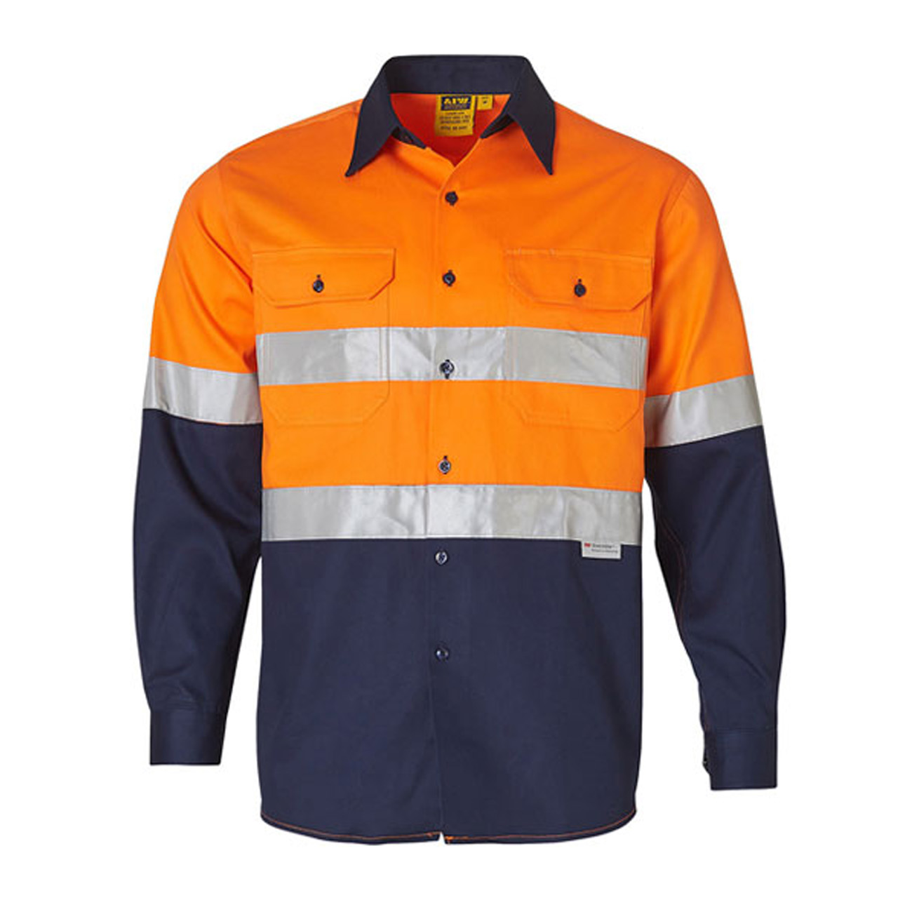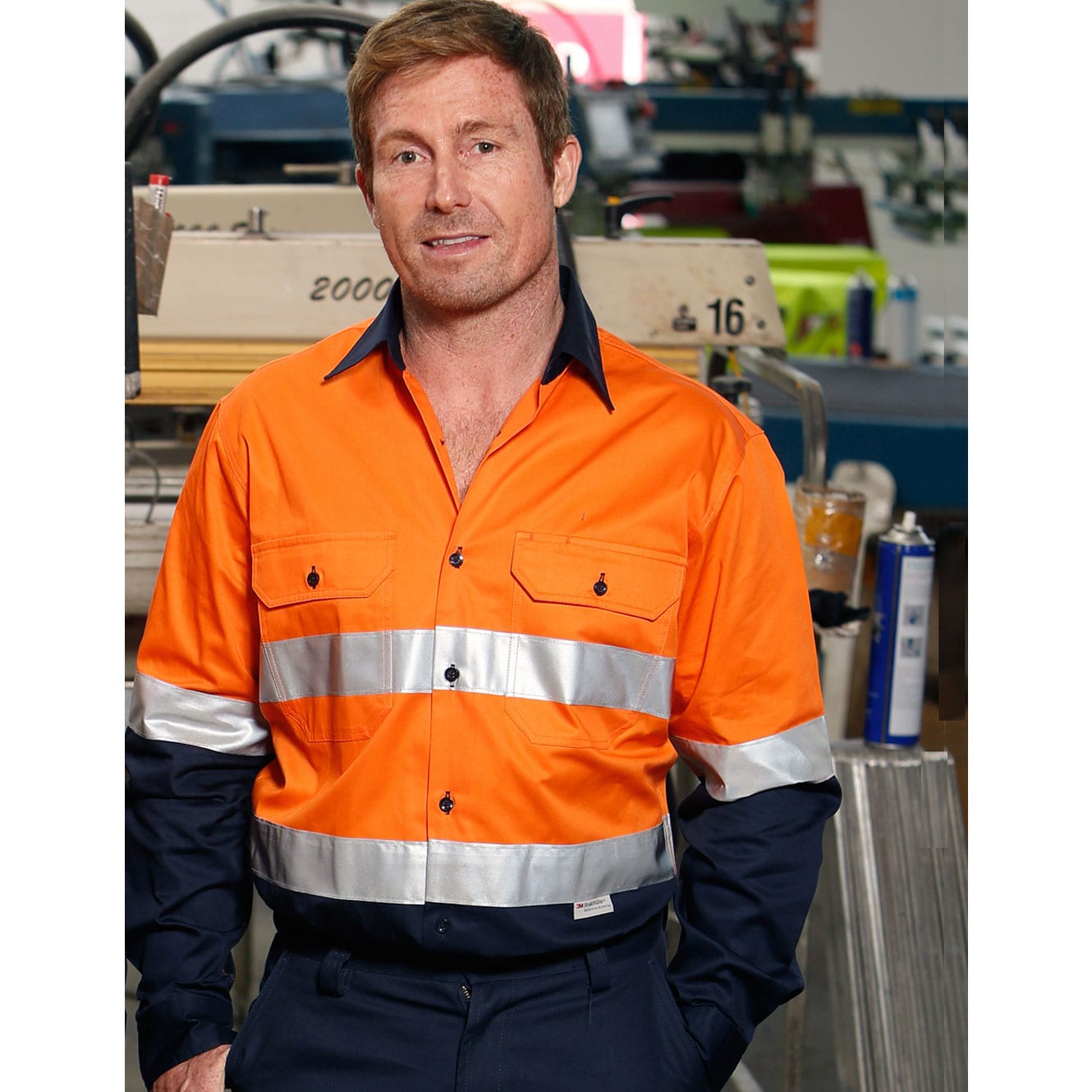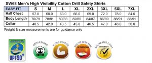 SW68 Mens Hi-Vis Cotton Drill Long Sleeve Safety Shirt With 3M Scotchlitetm Reflective Tapes