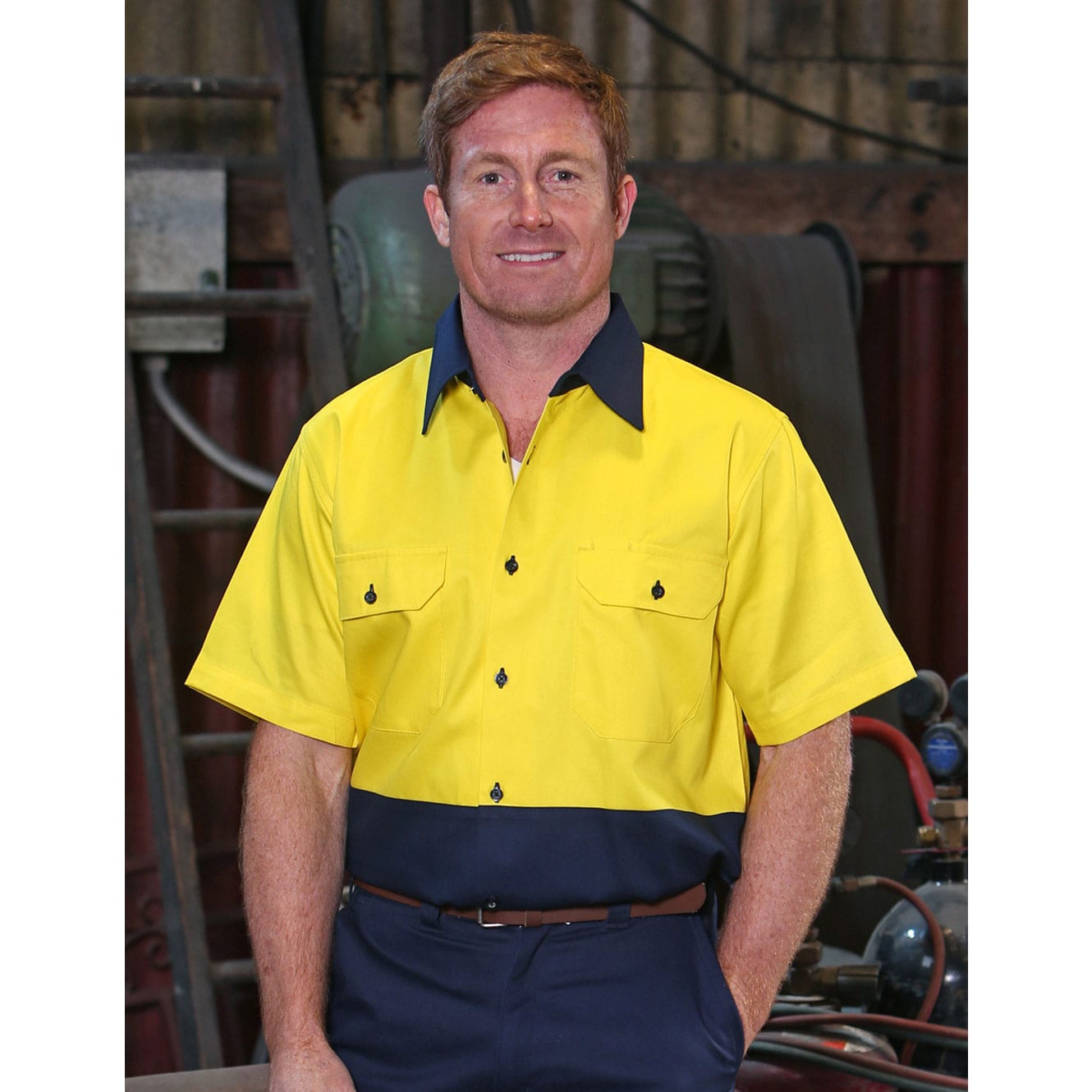 Mens Hi-Vis Cotton Drill Short Sleeve Safety Shirt