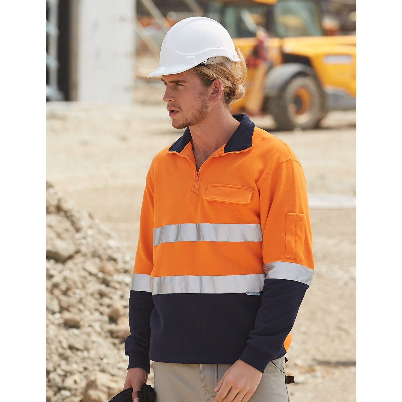 SW48 Mens Hi-Vis Cotton Fleecy Two-Tone Sweat Shirt With Chest Pocket And 3M Scotchlitetm Reflective Tapes