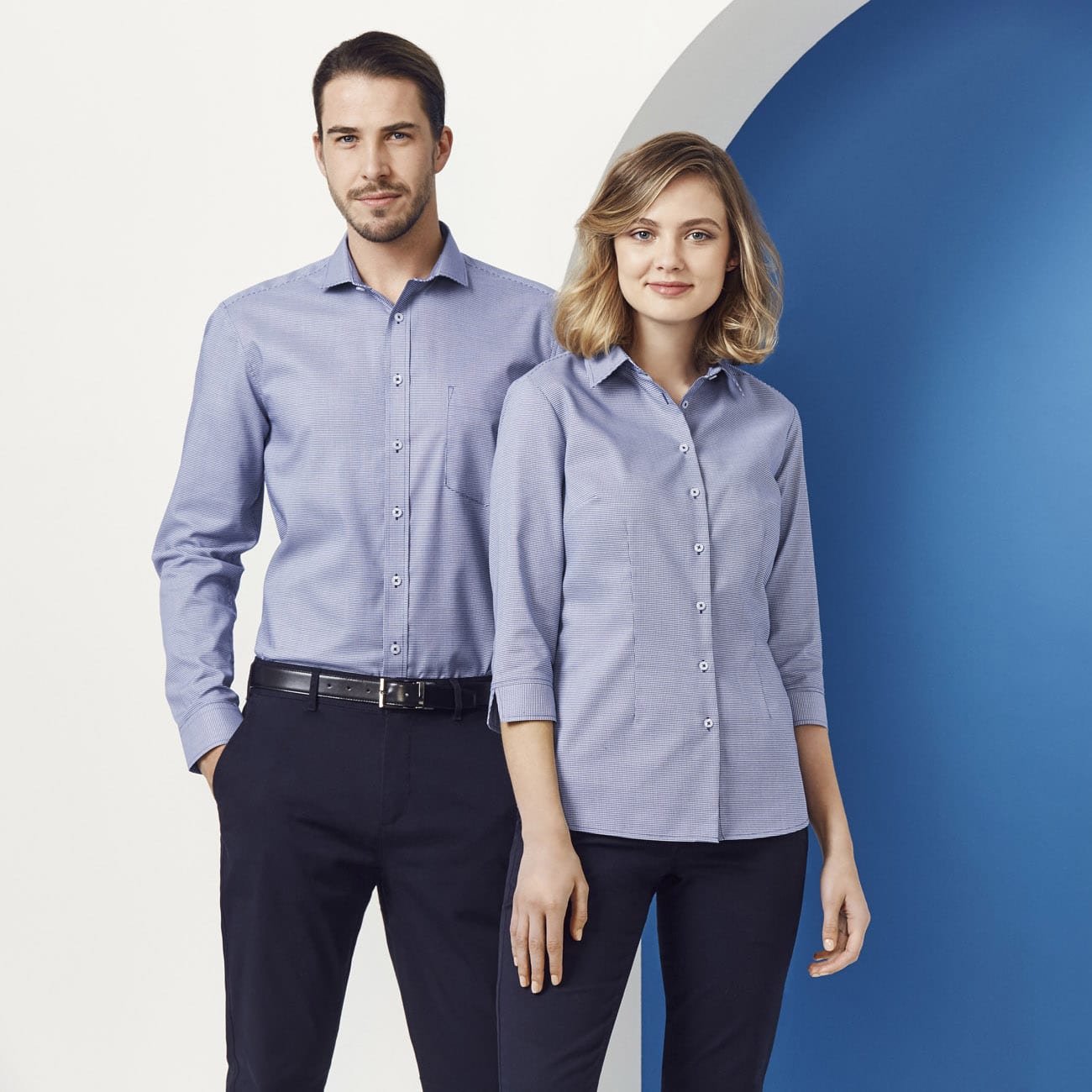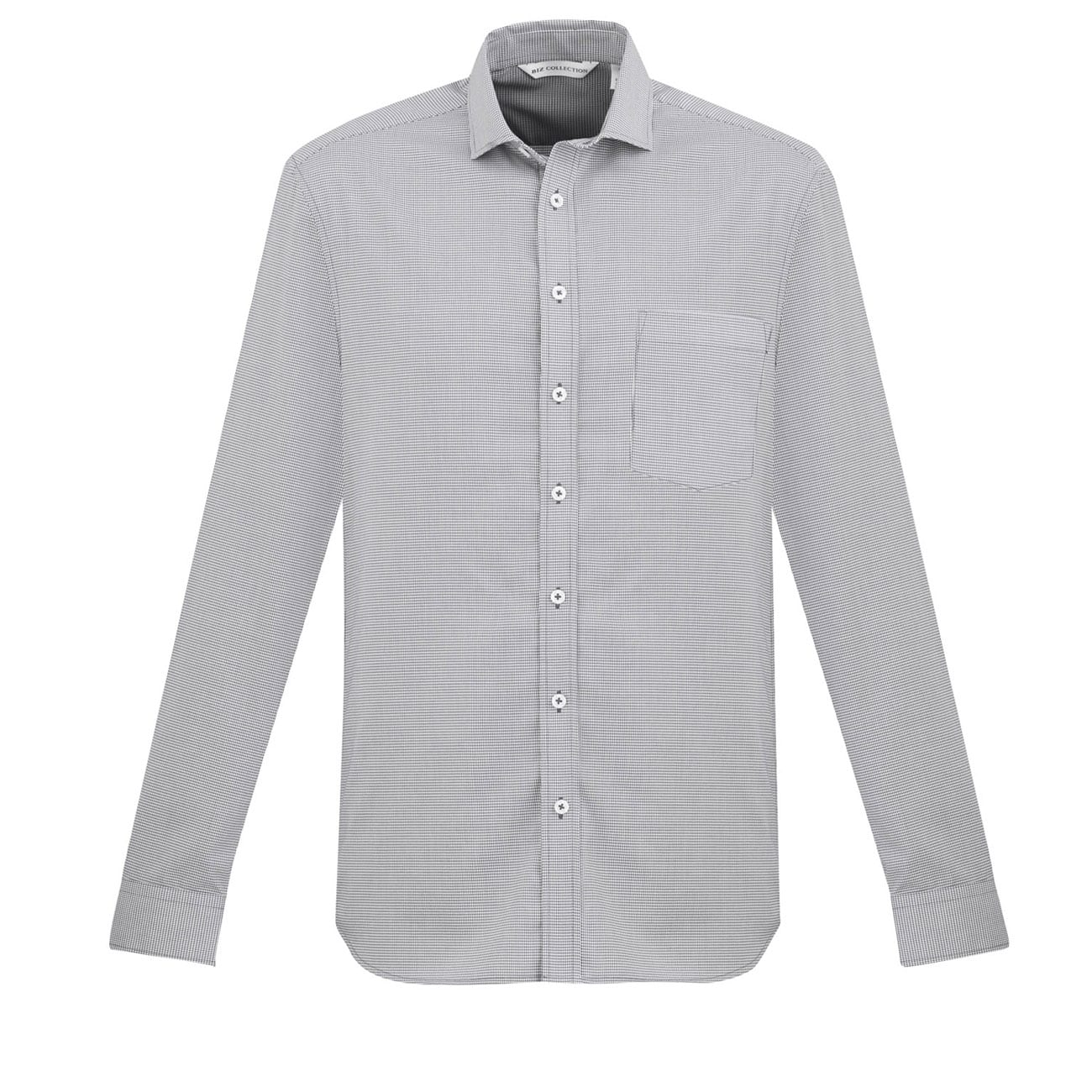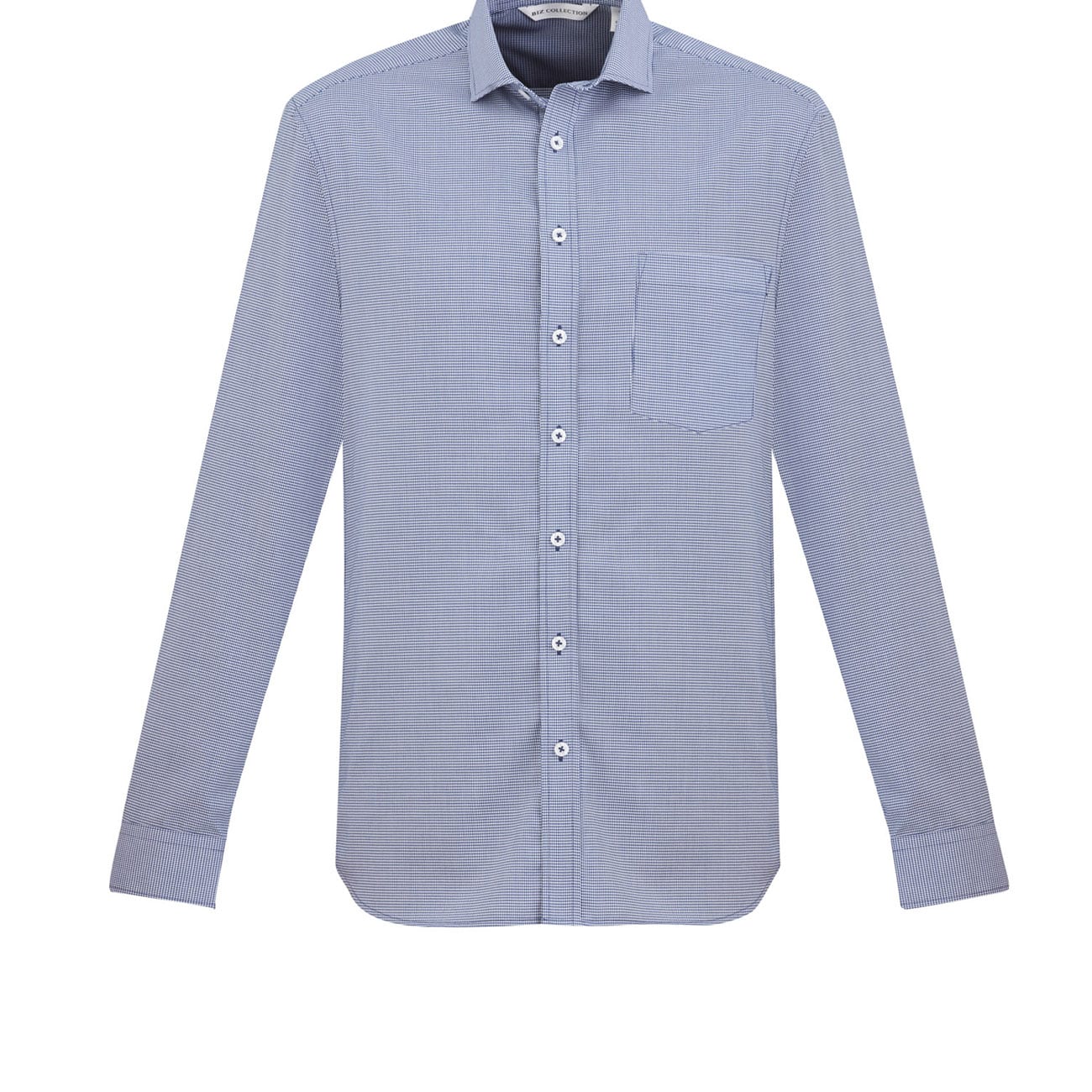 Mens features modern collar, chest pocket, twin back pleats and adjustable cuff