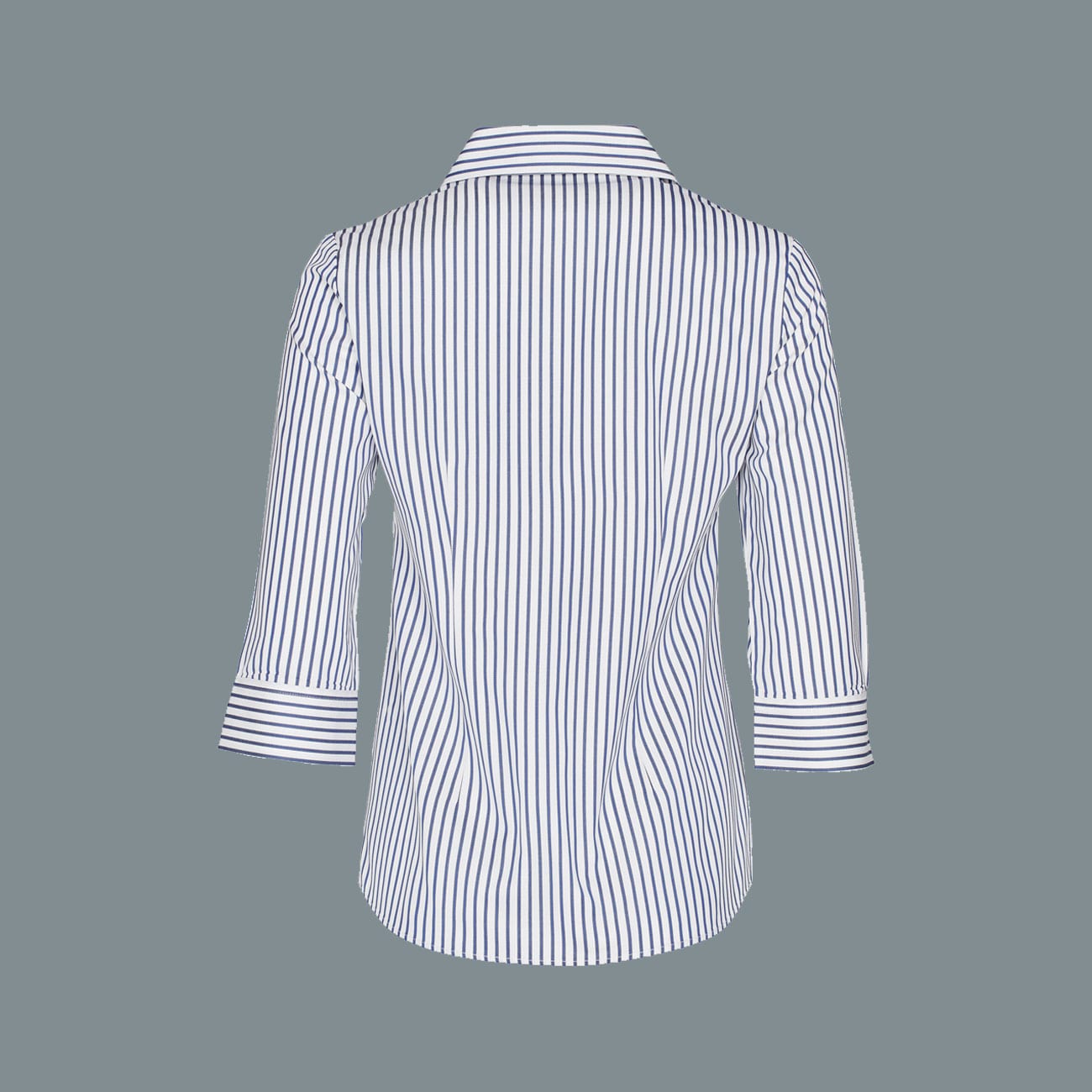 Ladies long sleeve have single-button square cuffs. Ladies 3/4 sleeve have open neck and centre-split cuffs.