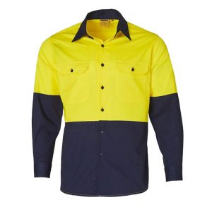 Mens & Ladies Hi-Vis Cool-Breeze Cotton Twill Long Sleeve Safety Shirt