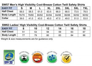 SW57/SW63 Mens & Ladies Hi-Vis Cool-Breeze Cotton Twill Short Sleeve Safety Shirt