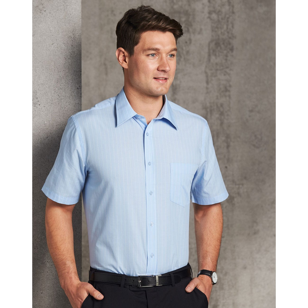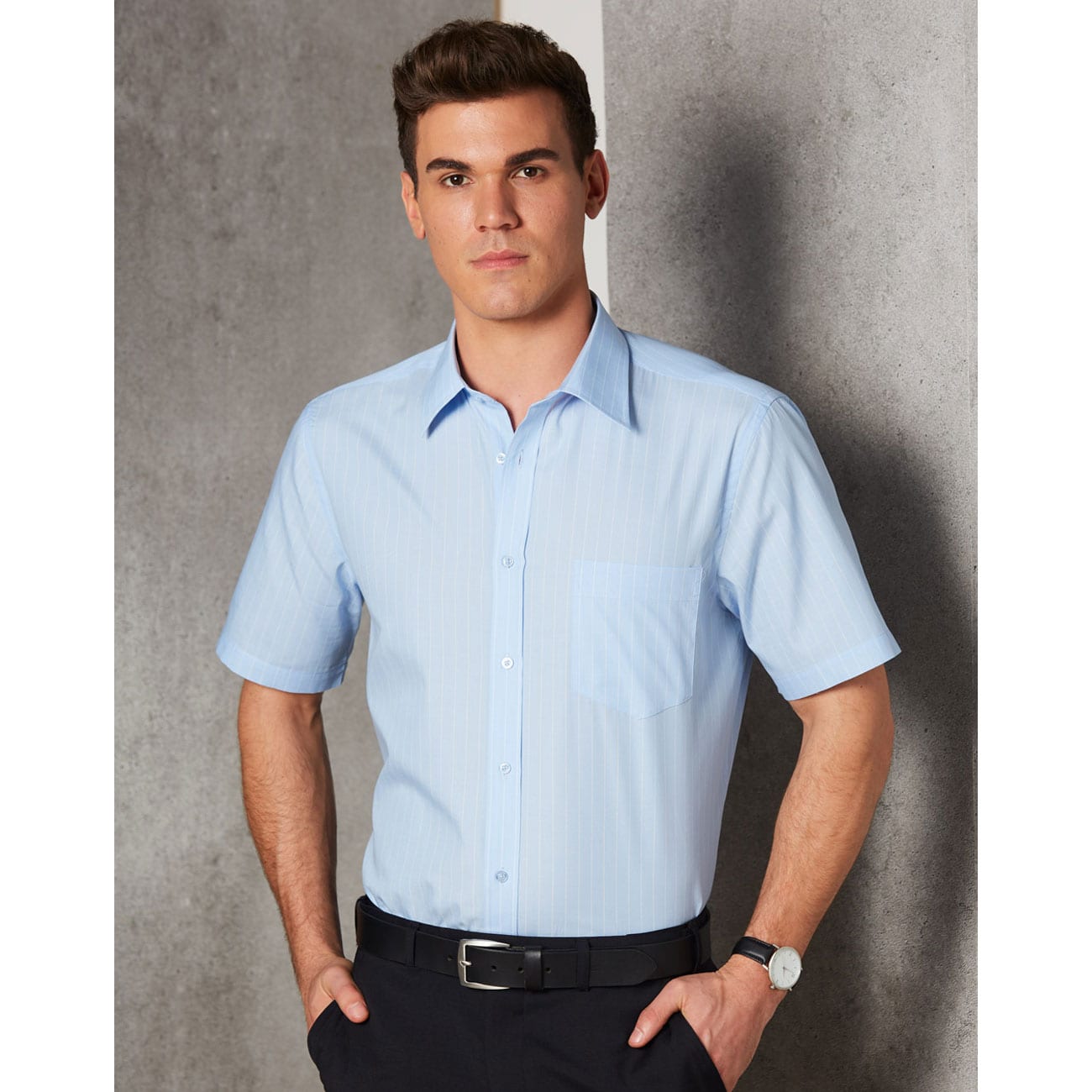 Regular collar. Mens have left chest pocket. Mens long sleeve have adjustable round cuffs.