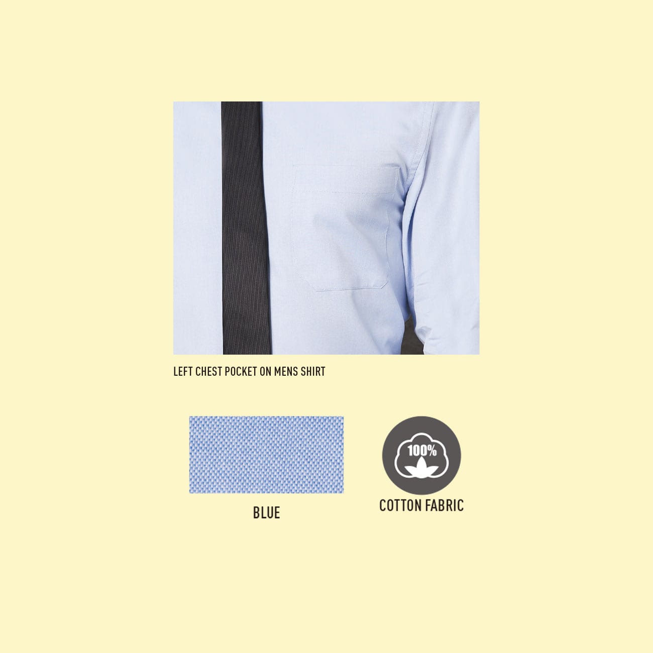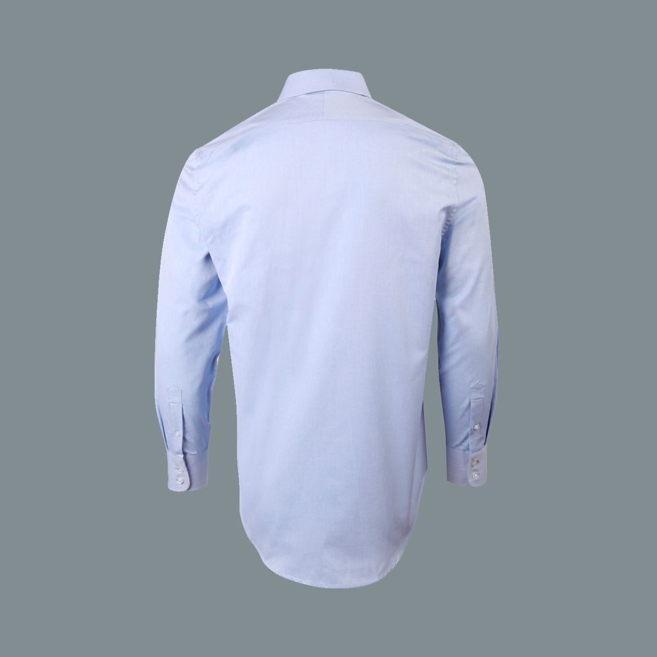 Mens have modern collar, left chest pocket and double-button square cuffs.