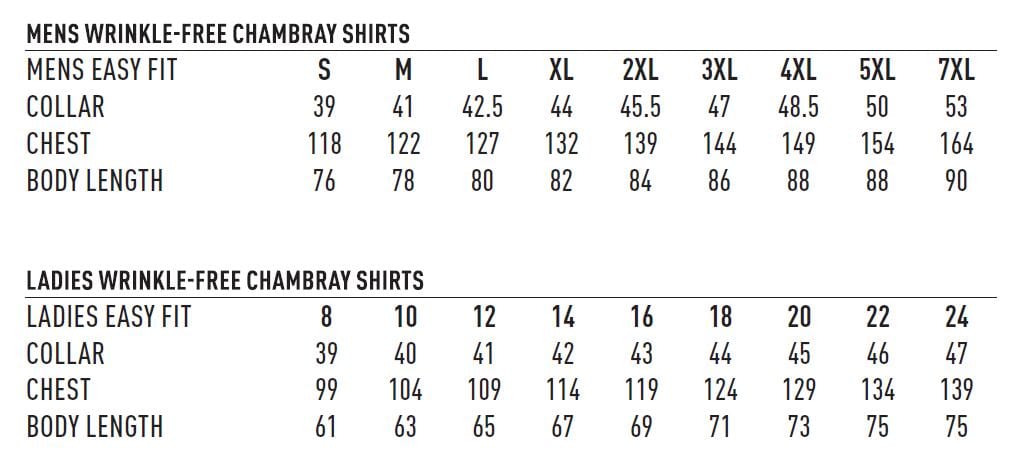 Mens & Ladies Wrinkle-Free Chambray Shirts