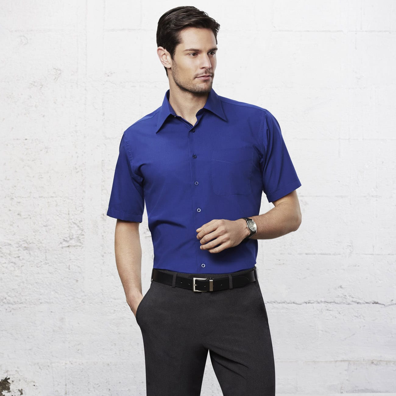 Standard collar and left chest pocket