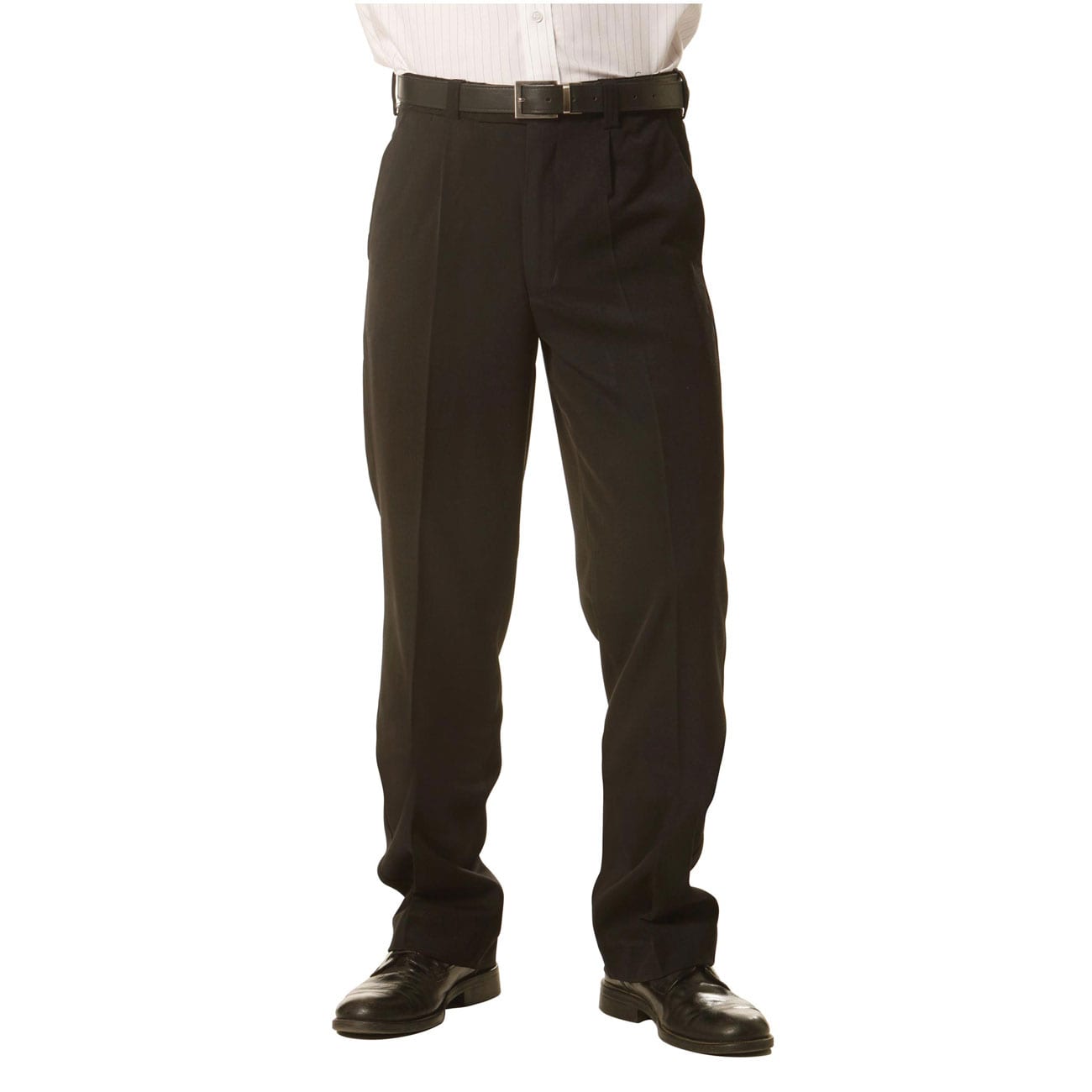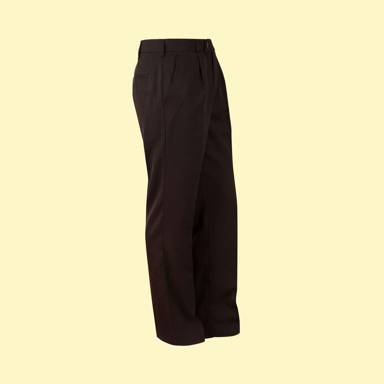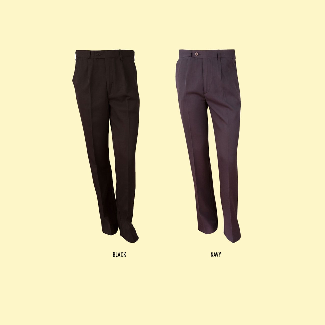 Stain Resistant. Side slanted pockets. 2 back jet pockets with buttons.