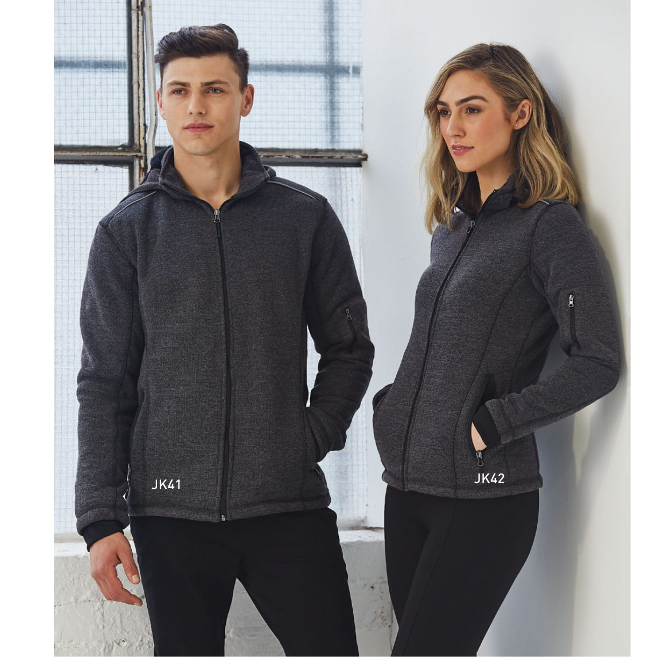 Zip-up hooded jacket, waterproof zips at front and side pockets