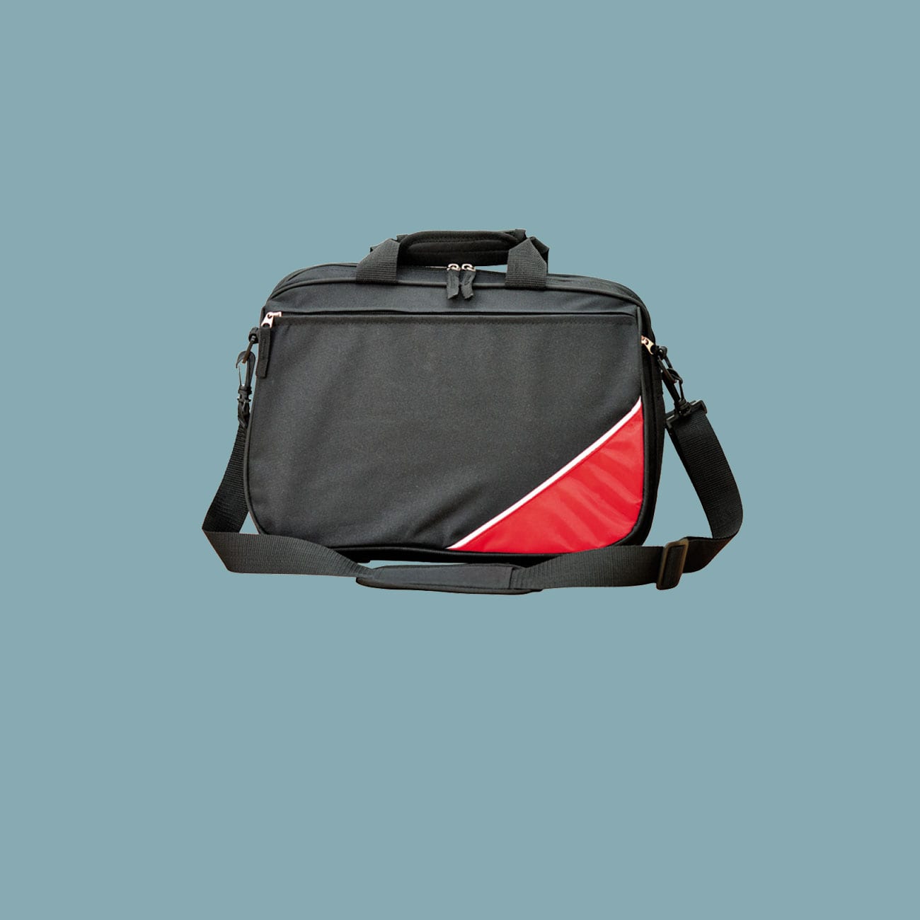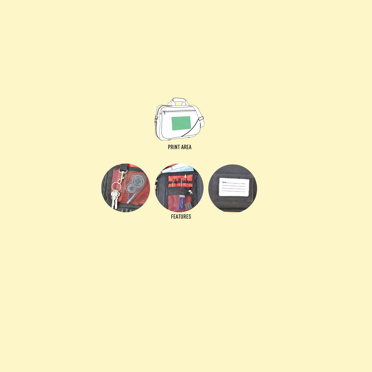 Single-zippered front pocket. Single-zippered pocket on back of bag.