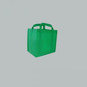 Large gusseted main compartment with plastic base board. Reinforced handles.