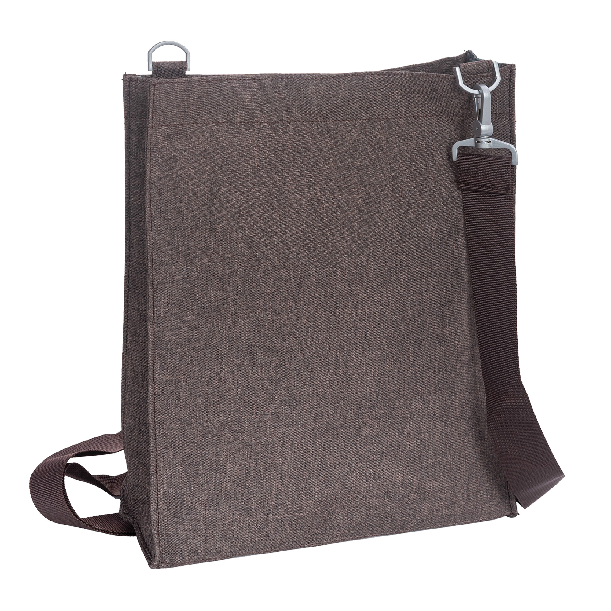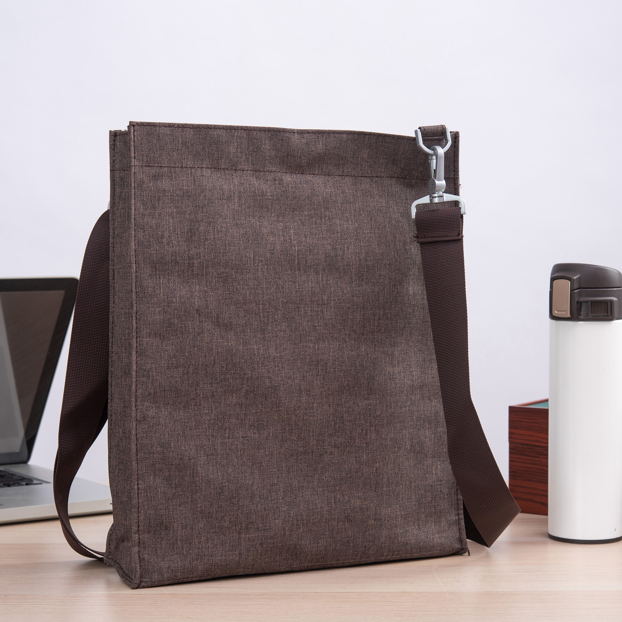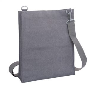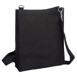 It has one adjustable shoulder strap and a magnetic button closure on top, 2 rubber pads on the bottom to protect your laptop or iPad by absorbing impact when placing the bag on a table.