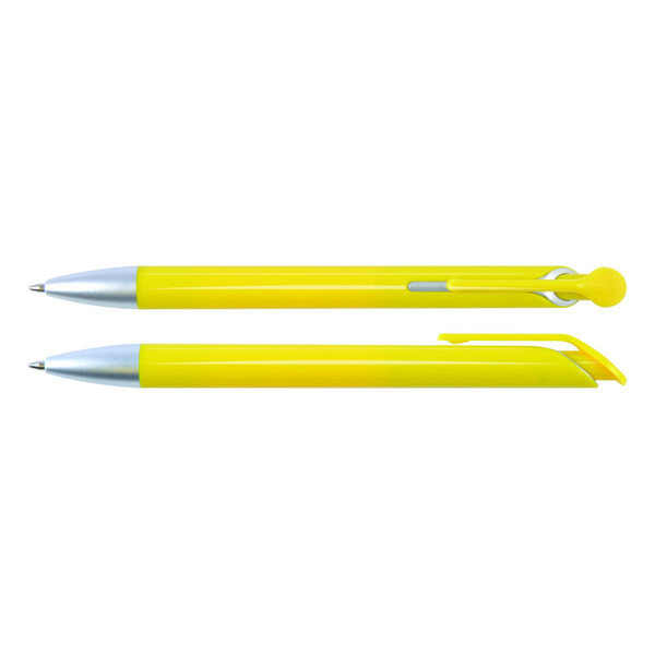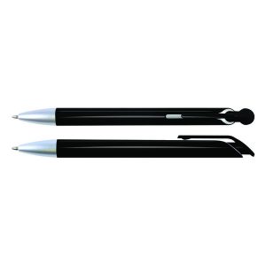 Gloss barrel push button ballpoint pen with matt silver tip.