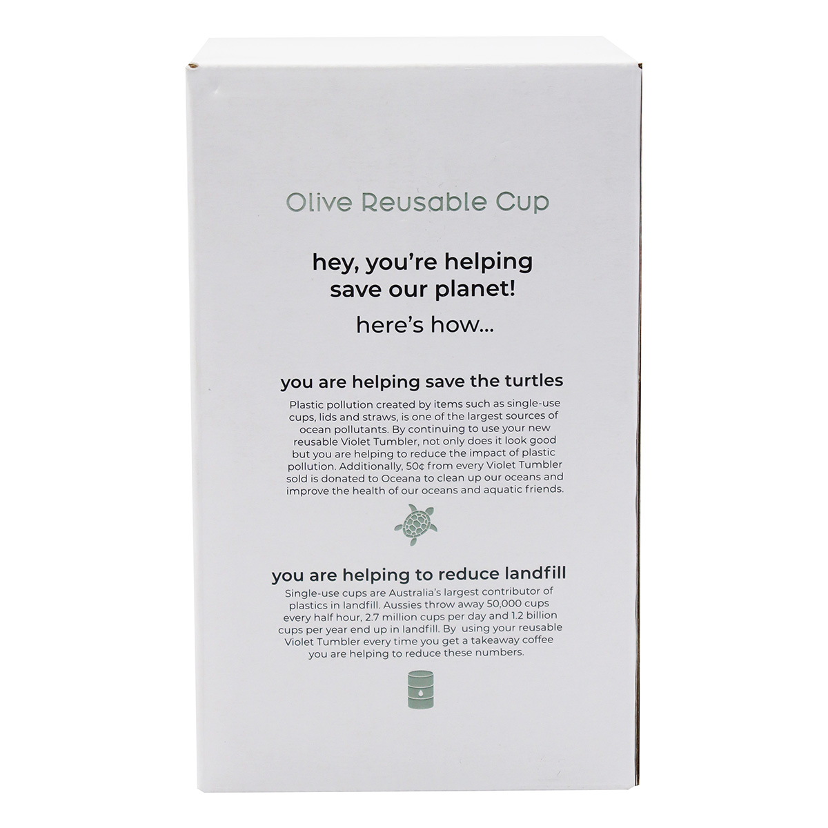 For every Olive Reusable Cups sold, 50¢ is donated to Sea Shepard to help clean up our oceans.