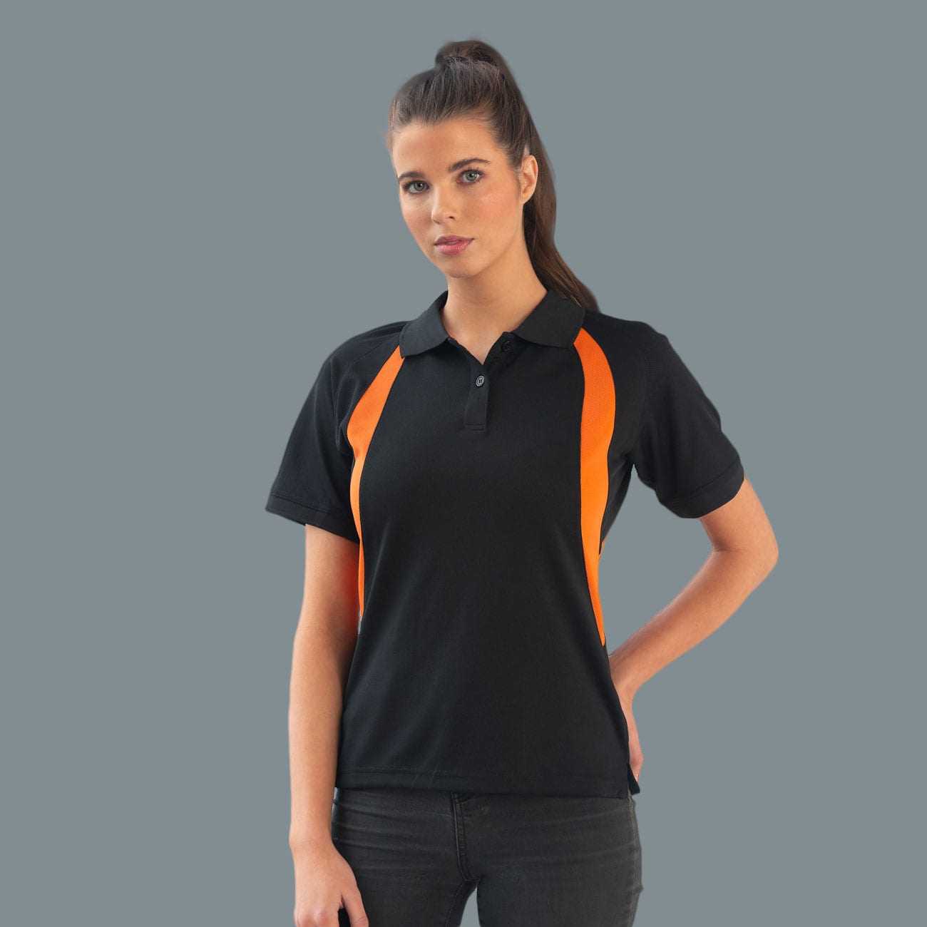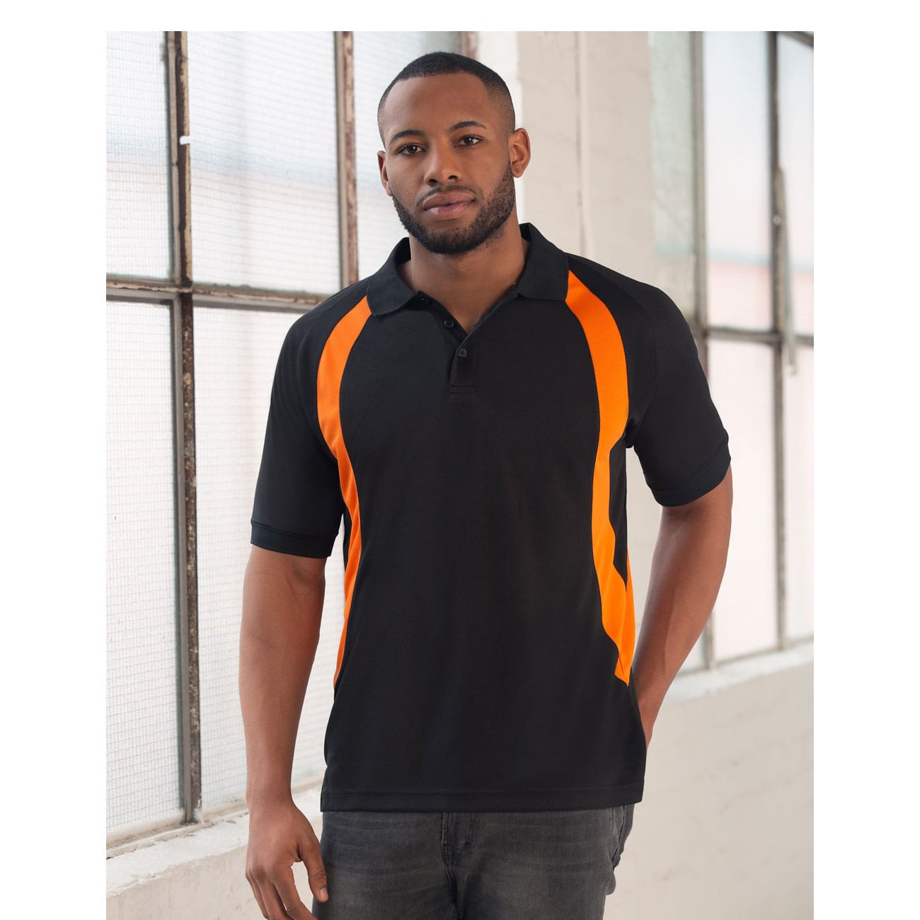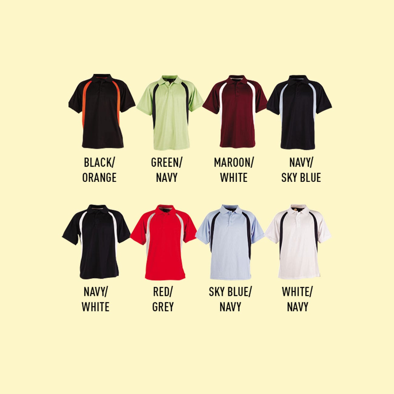 S-shape contrast on front and back of polo. Great colour range for sports, casual or team wear.