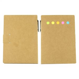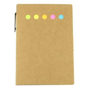 - A multi-purpose note pad which has a 50 leaf note pad, a 25 leaf pad of adhesive notes, five different coloured pads of adhesive paper flags (blue, pink, orange, yellow, green).