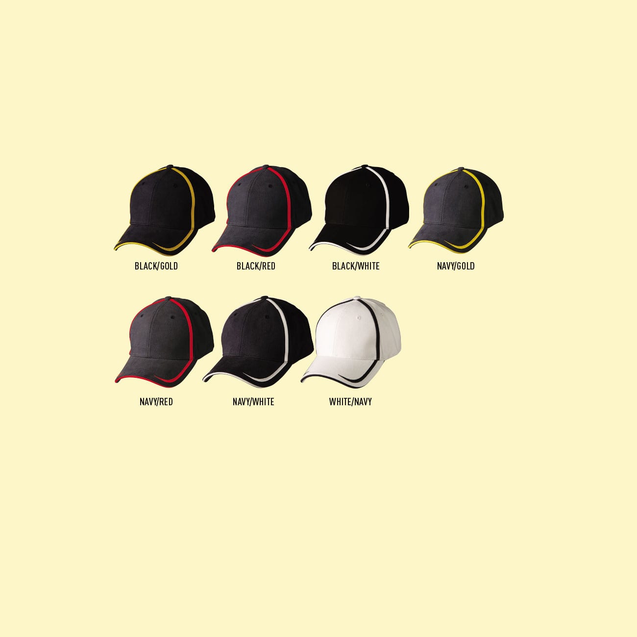 Contrasting sandwich. UPF rating 50+. Meets AS/NZS 4399:1999. Poly/cotton fabric with soft brim.
