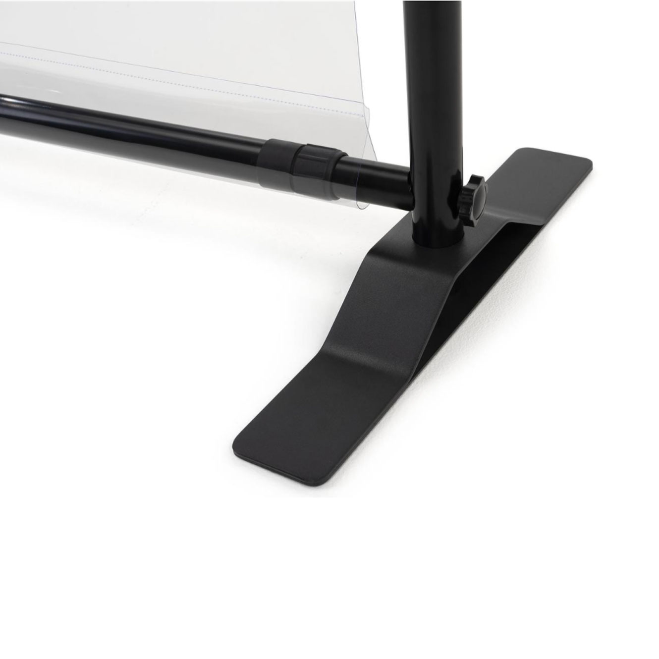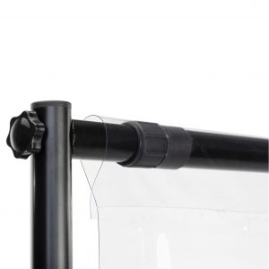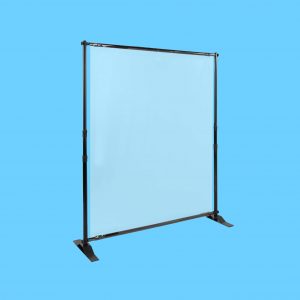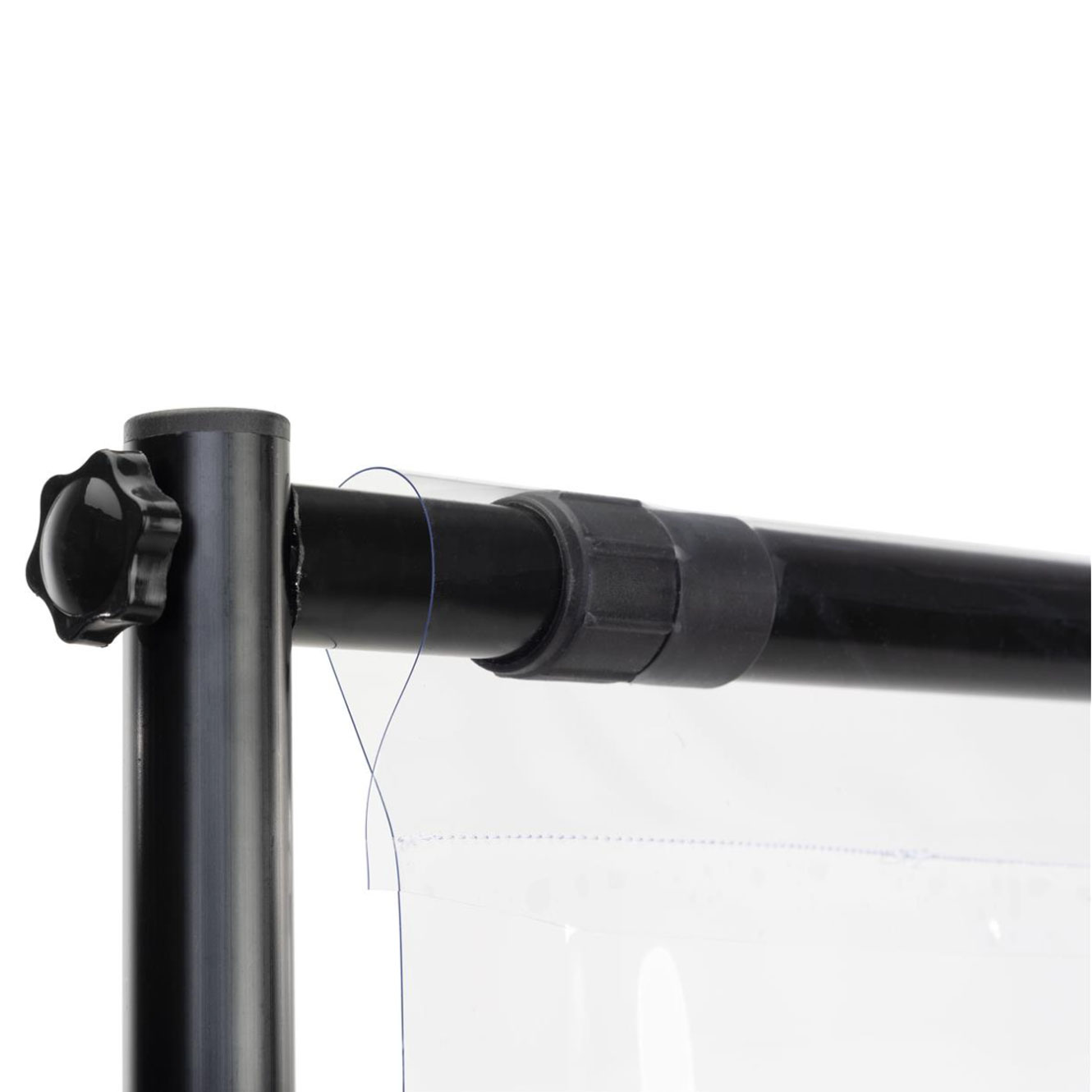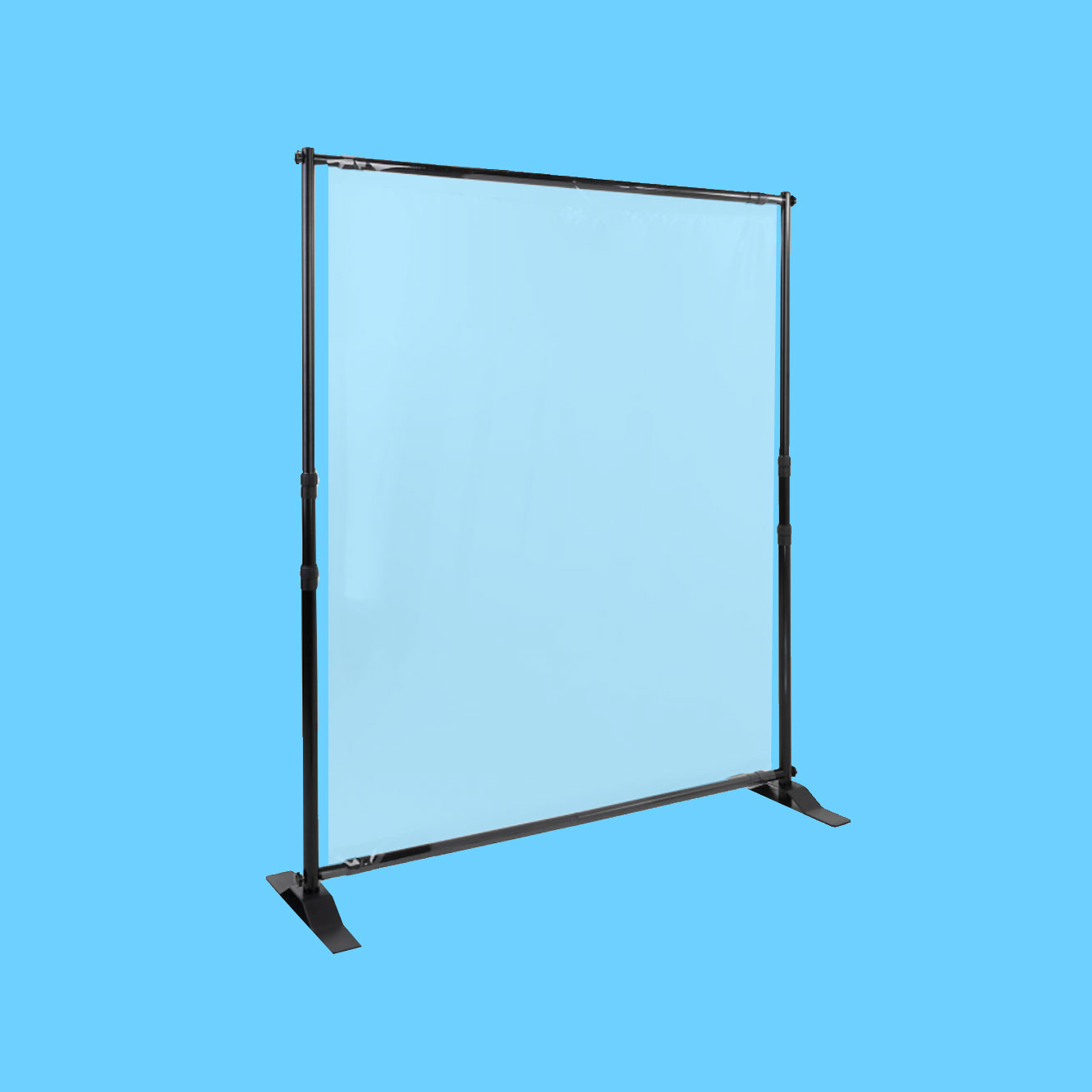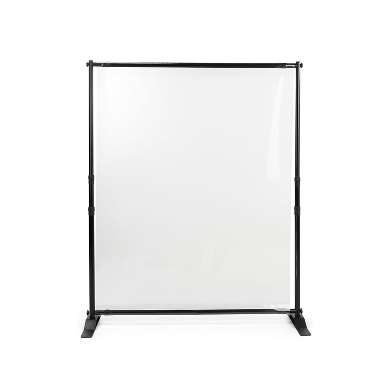 Aluminium portable frame with transparent vinyl partition can be easily located in any position without blocking views.
