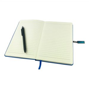 - Promotional A5 size premium quality notebook with a thermo debossing PU leather cover, a remarkable two-tone debossing logo.