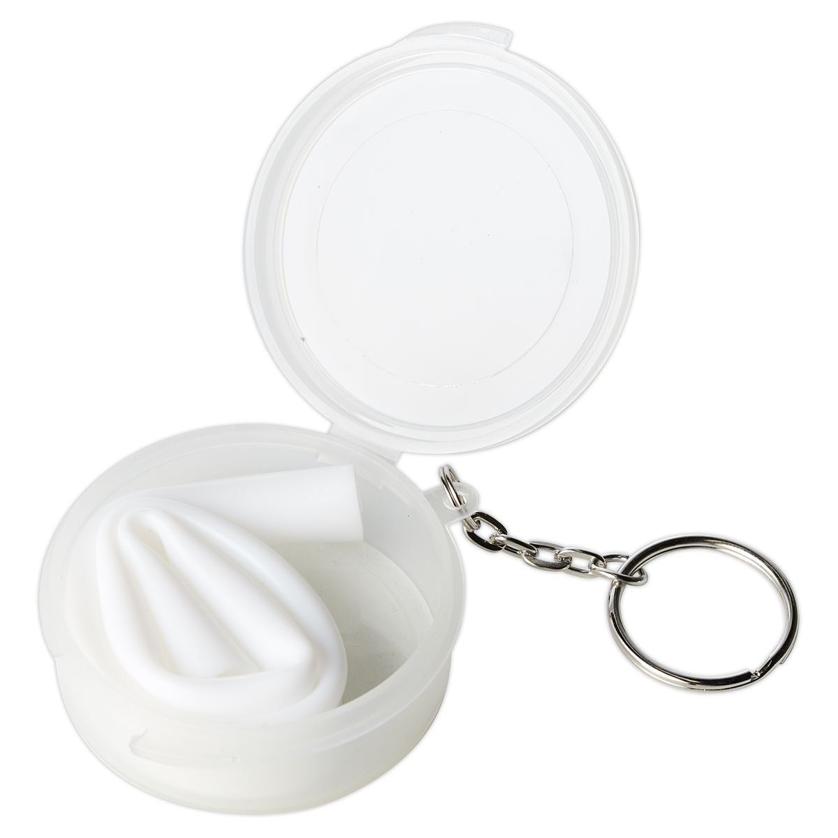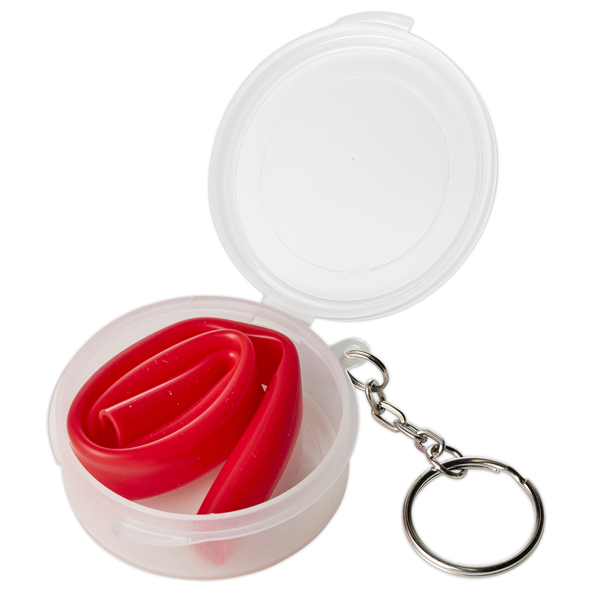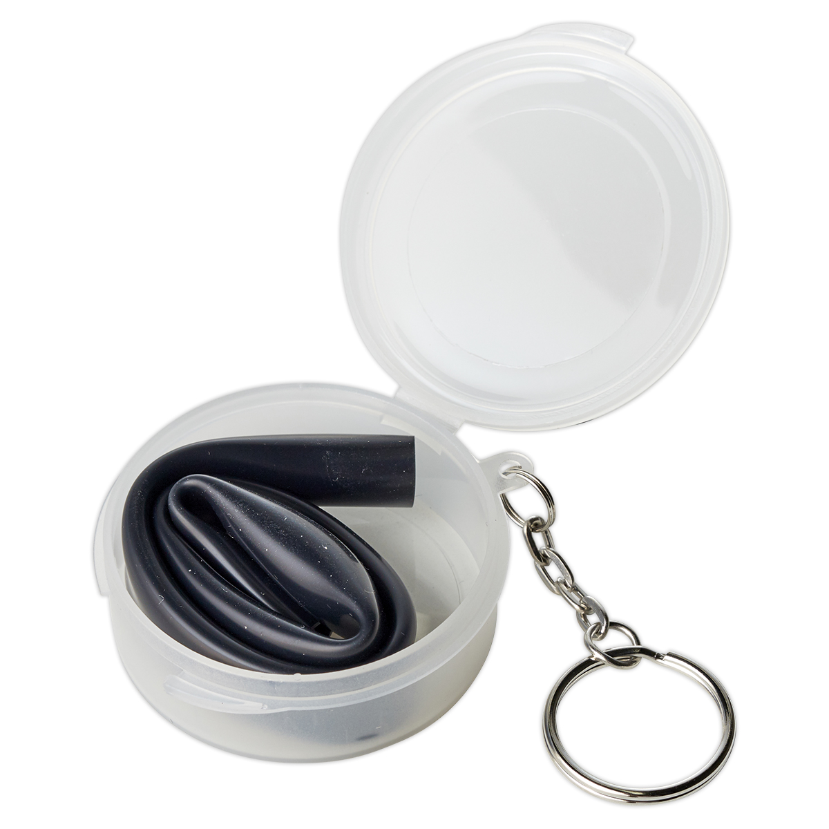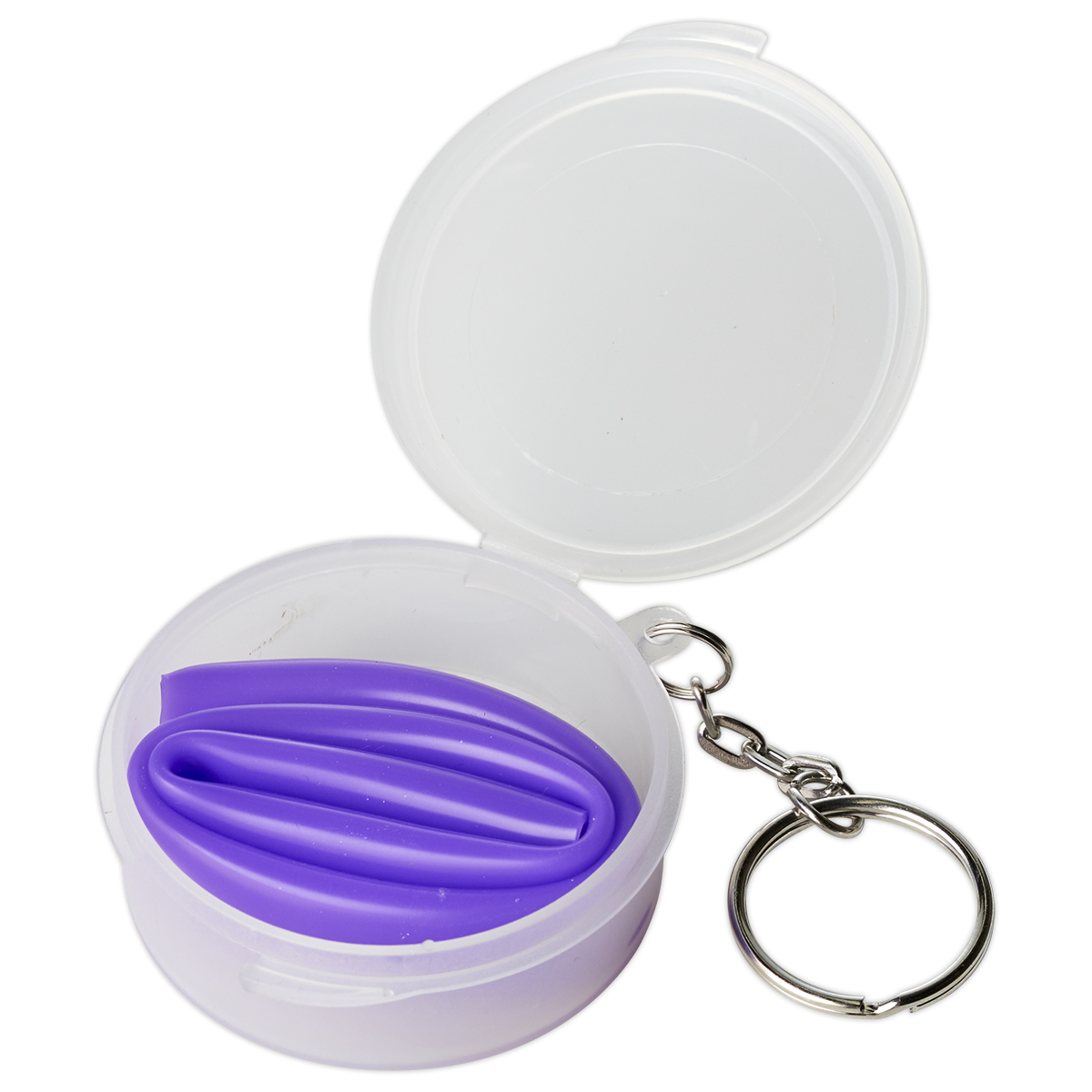 Food grade silicone straws in compact plastic key chain cases make carrying your new reusable straws a breeze!