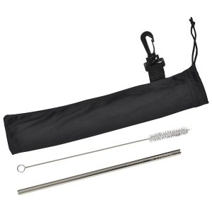 Say goodbye to plastic with these amazing reusable stainless steel straws. Each straw is provided with a cleaning brush and a black drawstring pouch with carabiner.