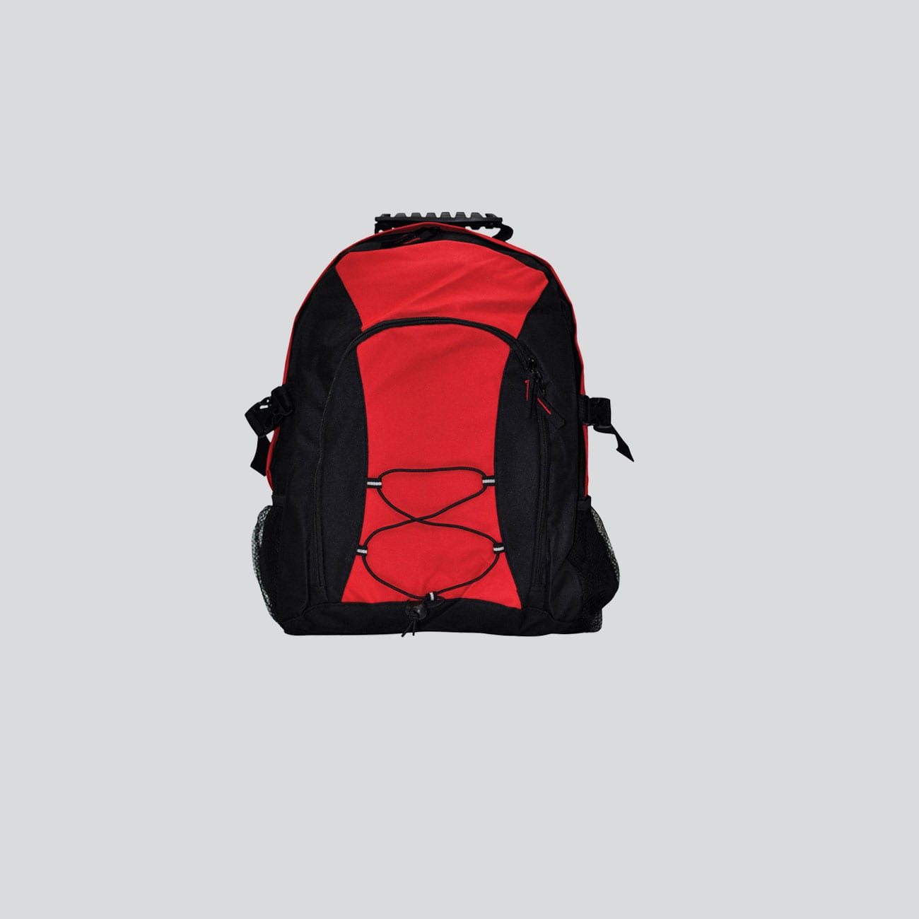 Bungee elastic cord and toggle. Padded back panels and straps.