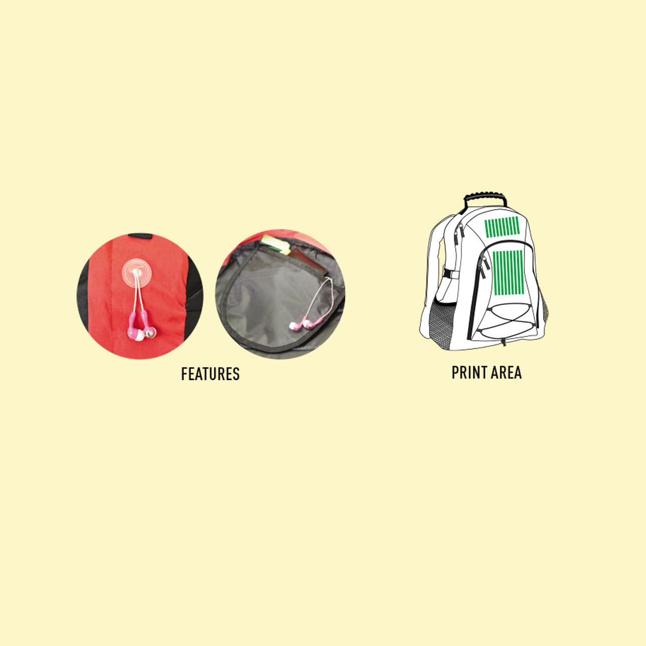 Double-sided mesh pockets. Hidden porthole for headphones.