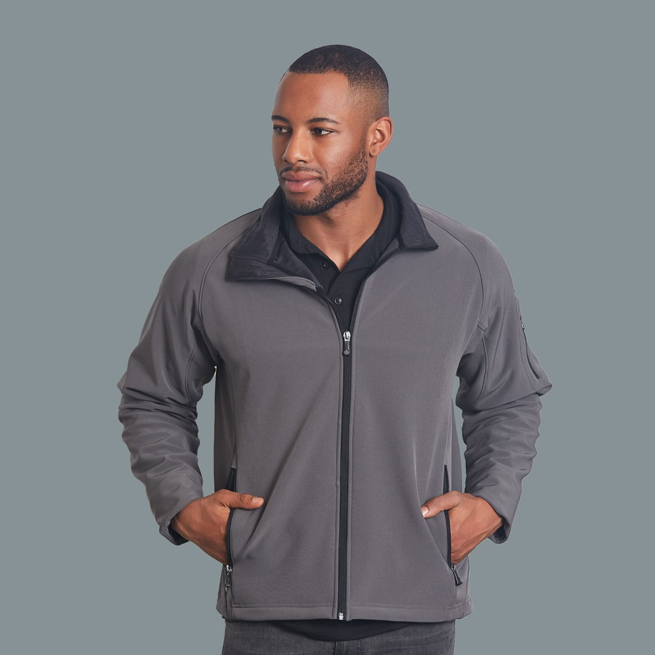 340gsm – Bonded Softshell, shell face: 90% polyester, 10% elastane, shell back: 100% polyester.