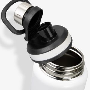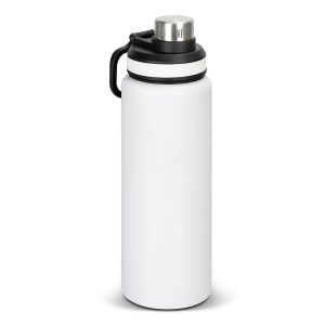 The perfect drinking companion, this 900ml single wall drink bottle is made from stainless steel and comes with a secure screw on lid featuring a silicone band for extra grip. This water bottle comes in a sleek matte black or a white high gloss paint finish, along with a convenient carry handle. this bottle is the perfect blend of style and practicality, and is presented in a natural gift box. This product is not dishwasher safe, and handwashing is recommended.