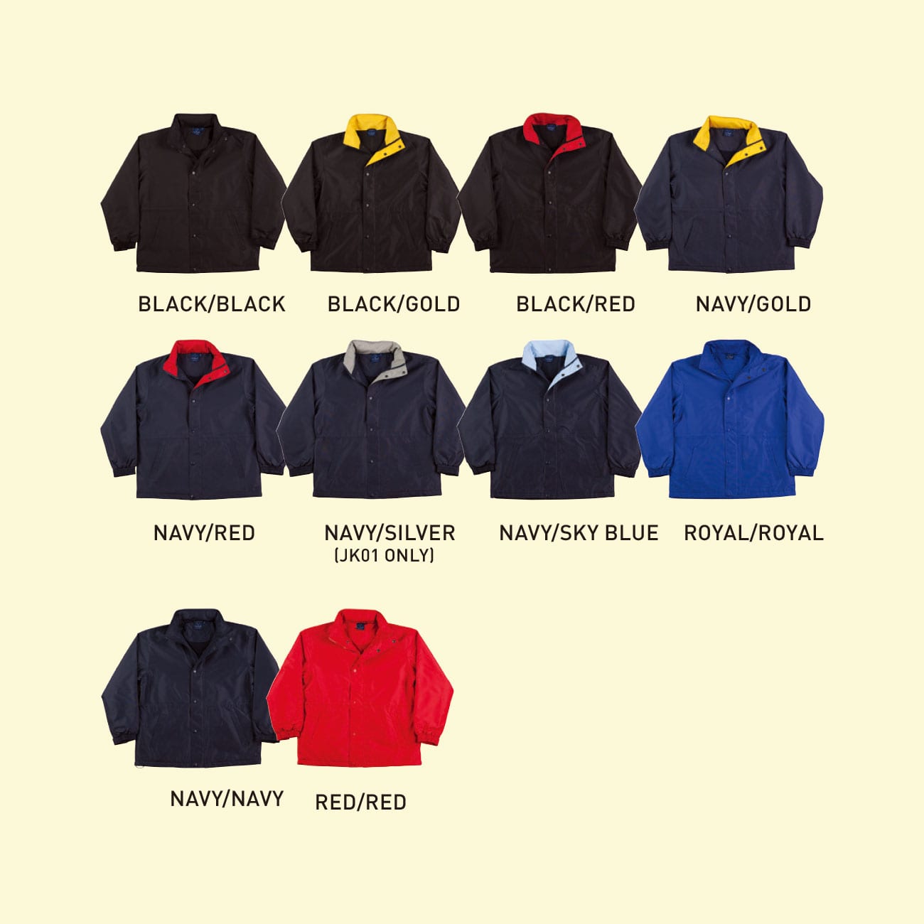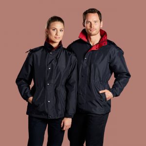 High wind collar and adjustable cuff with velcro flap. Embroidery accessible.