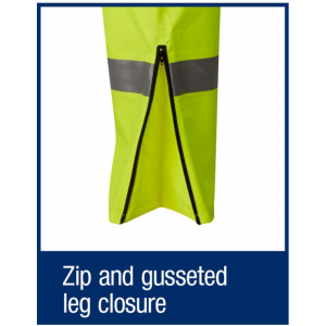 - Zip and gusseted leg closure