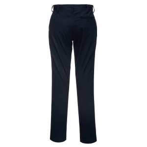 This slim fit stretch chino is the perfect uniform solution. It offers a contemporary slim fit in a dynamic cotton stretch twill fabric. The stretch fabric gives the ultimate in comfort and freedom of movement. Features include side pockets, a rear buttoned jetted pocket and a hook and bar waist fastening. Highly durable with twin stitching throughout and bar-tacked at all stress points.