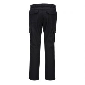 This slim fit stretch trouser has all the features of a cargo style with the advantage of dynamic cotton stretch twill fabric. This stretch fabric gives the ultimate in comfort and freedom of movement. Features include multiple utility pockets and a concealed hook and bar waist fastening. With twin stitching throughout and bar-tacking at all stress points, this trouser is highly durable.