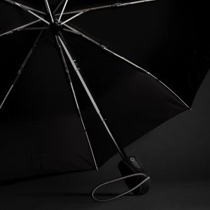 Stay dry in style with this compact three-stage Swiss Peak folding umbrella which has automatic opening and closing. It has an eight-panel, 190T showerproof pongee canopy with 53cm ribs. Other features include a windproof eight-rib fibreglass frame, metal tips, a velcro tie, a chromed metal shaft and stunning presentation in a Swiss Peak gift tube.