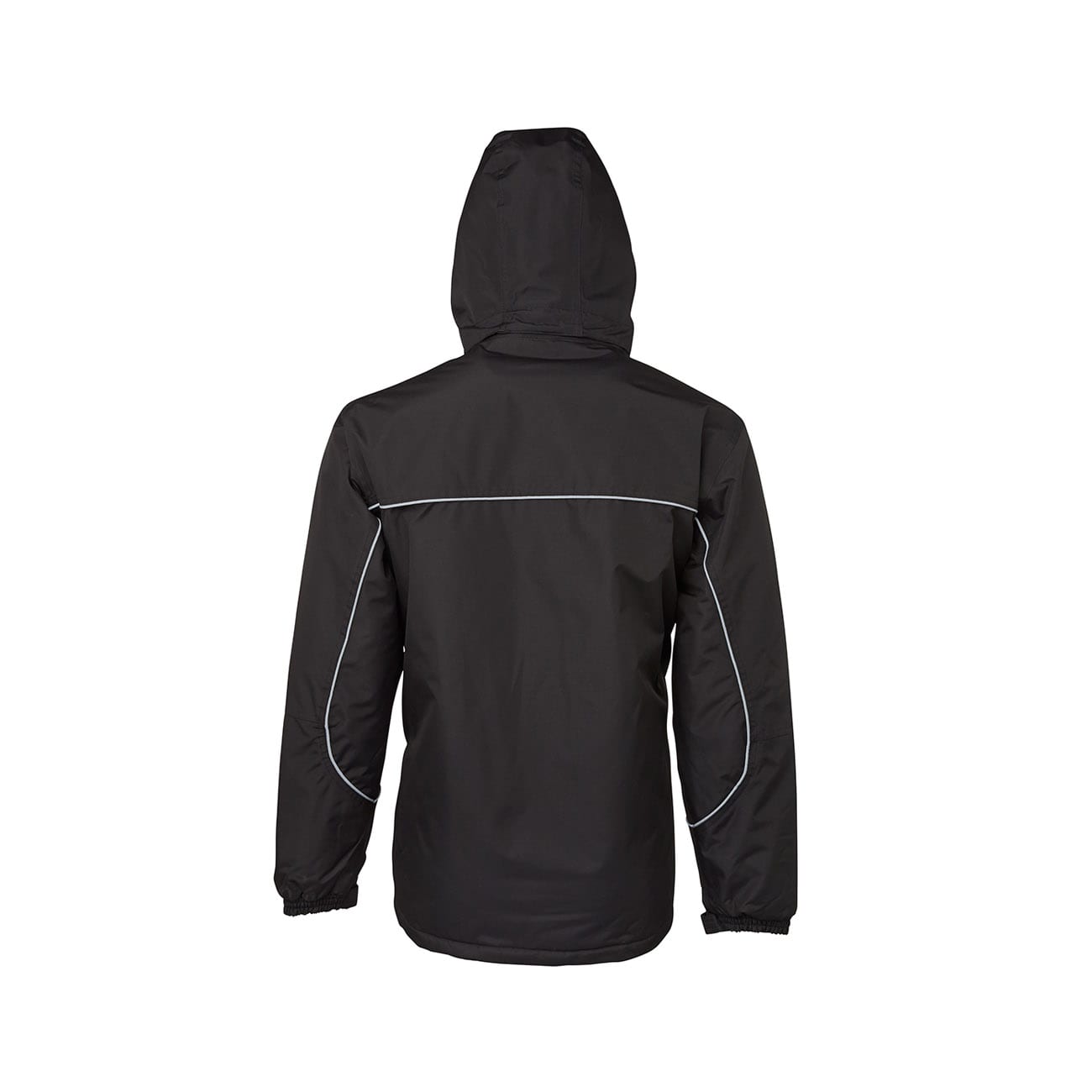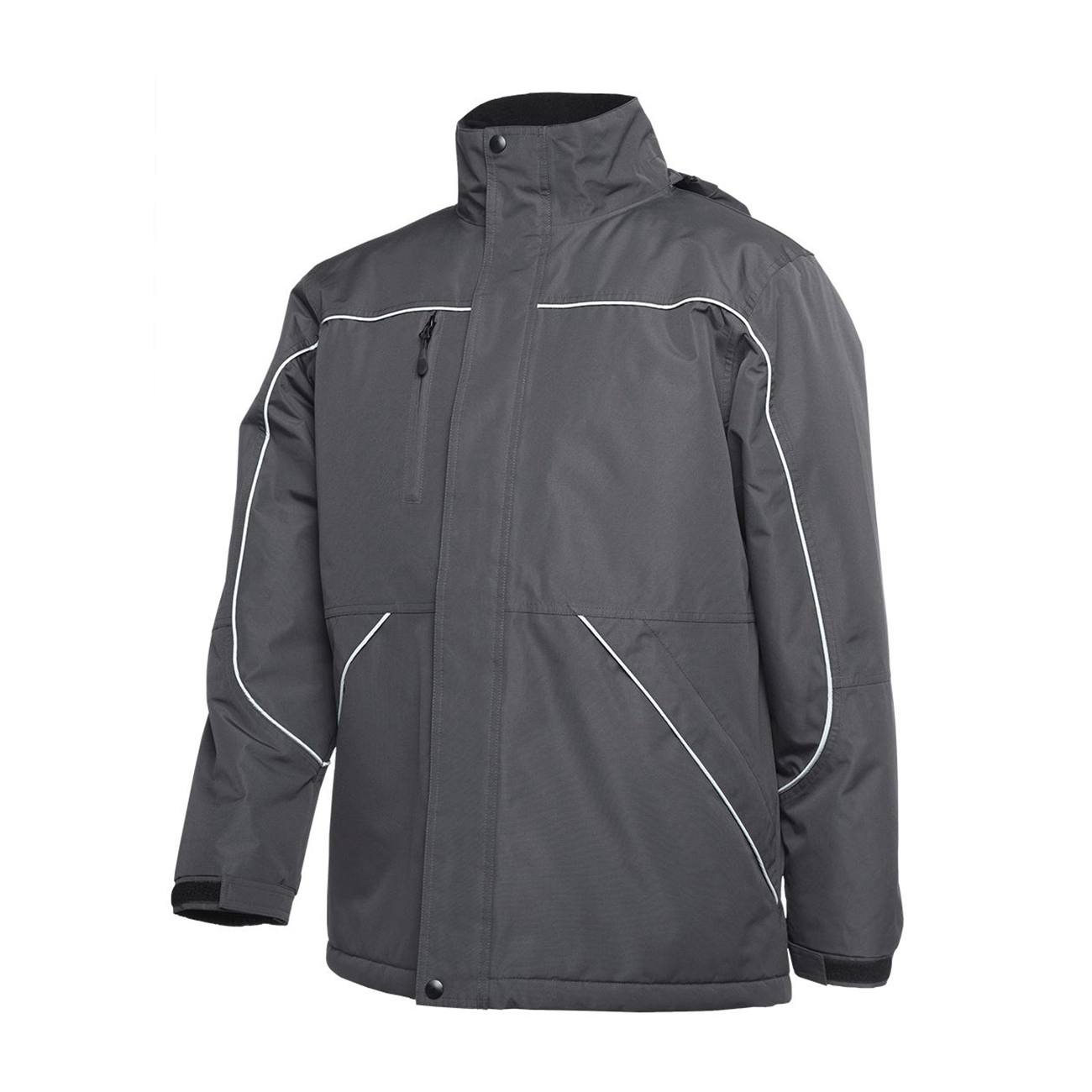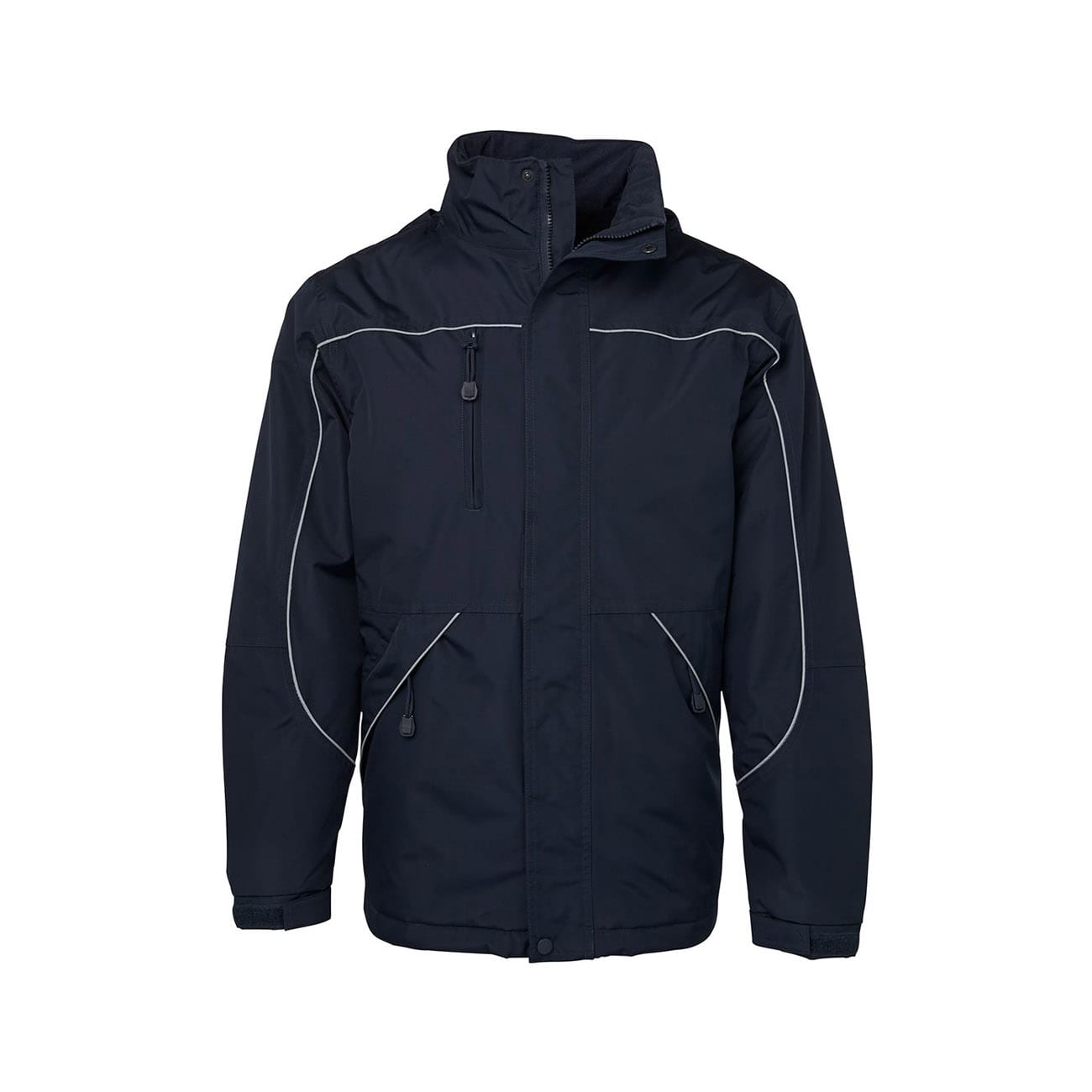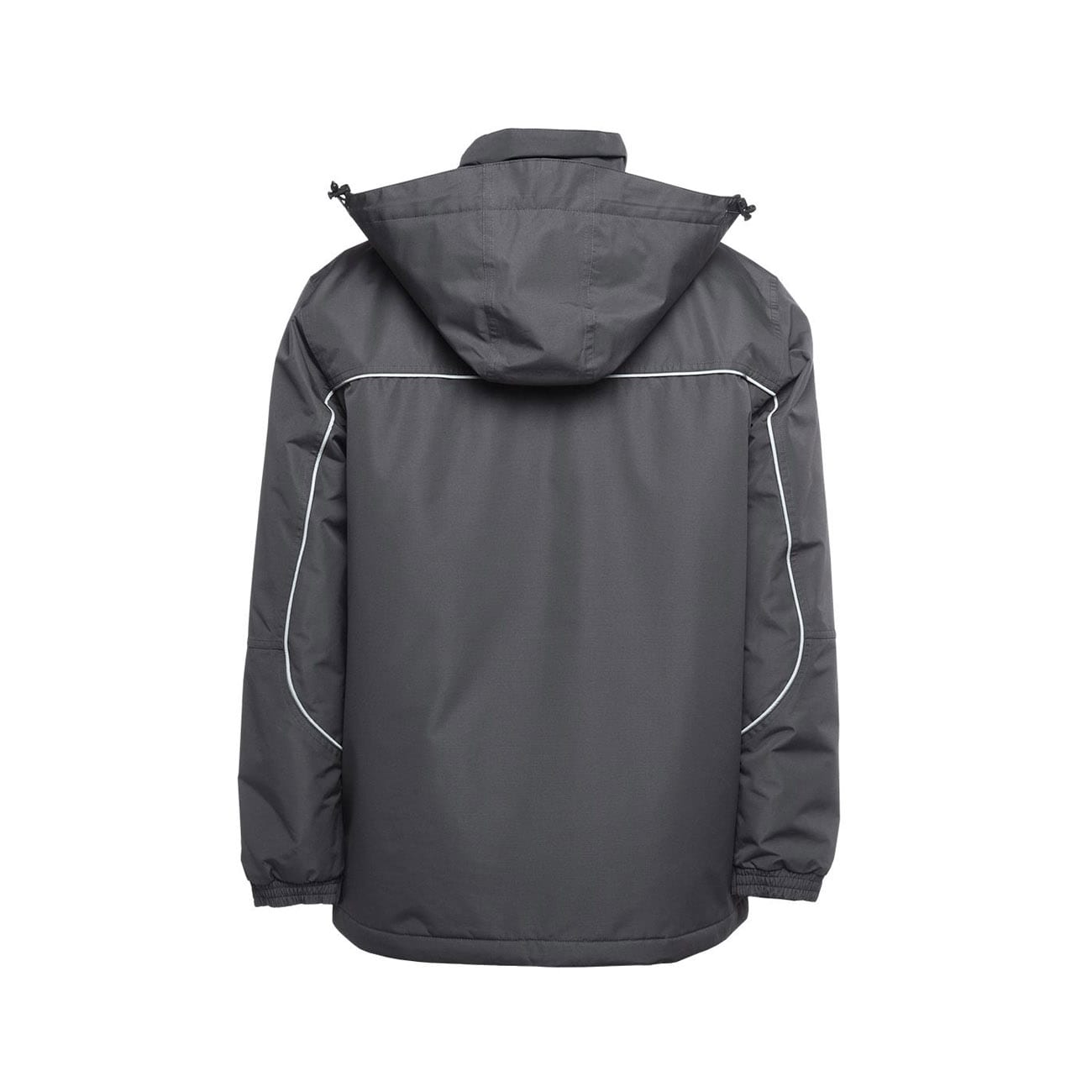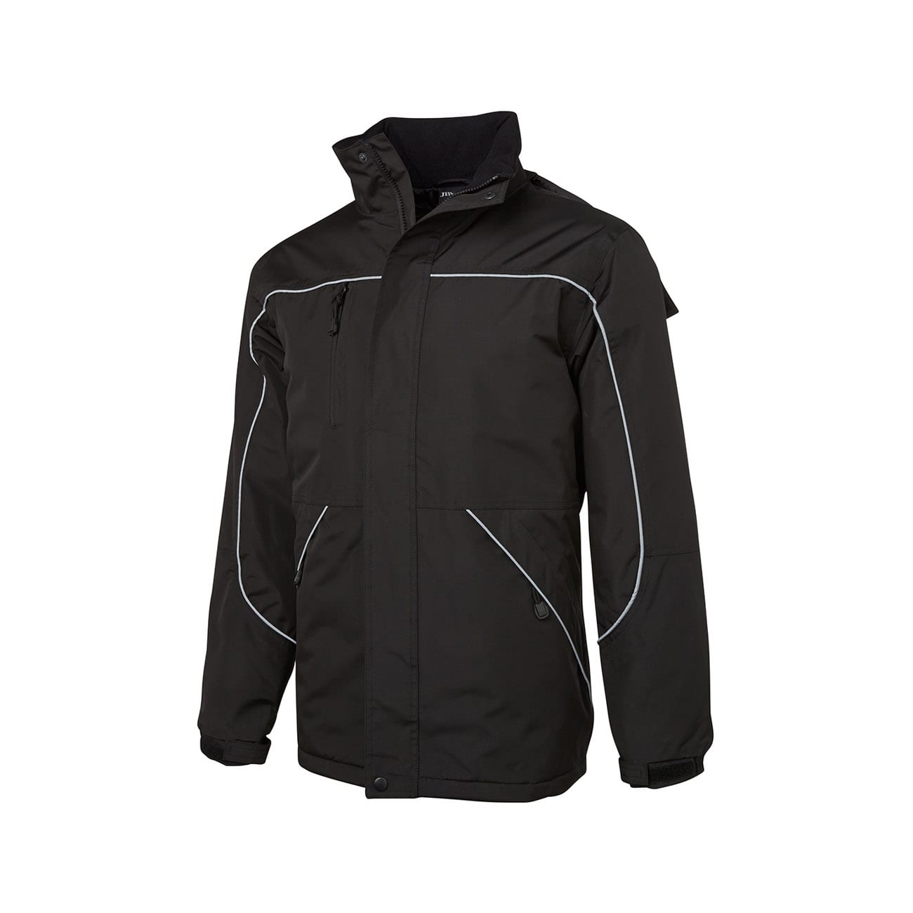 - Removable hood with neck protector, internal storage pouch and adjustable elastic hem with toggles
