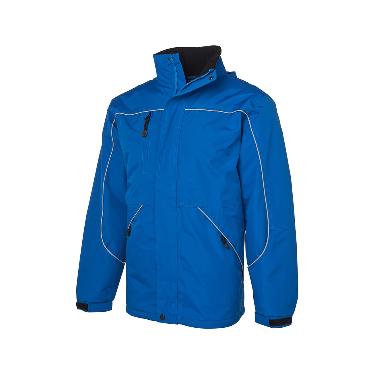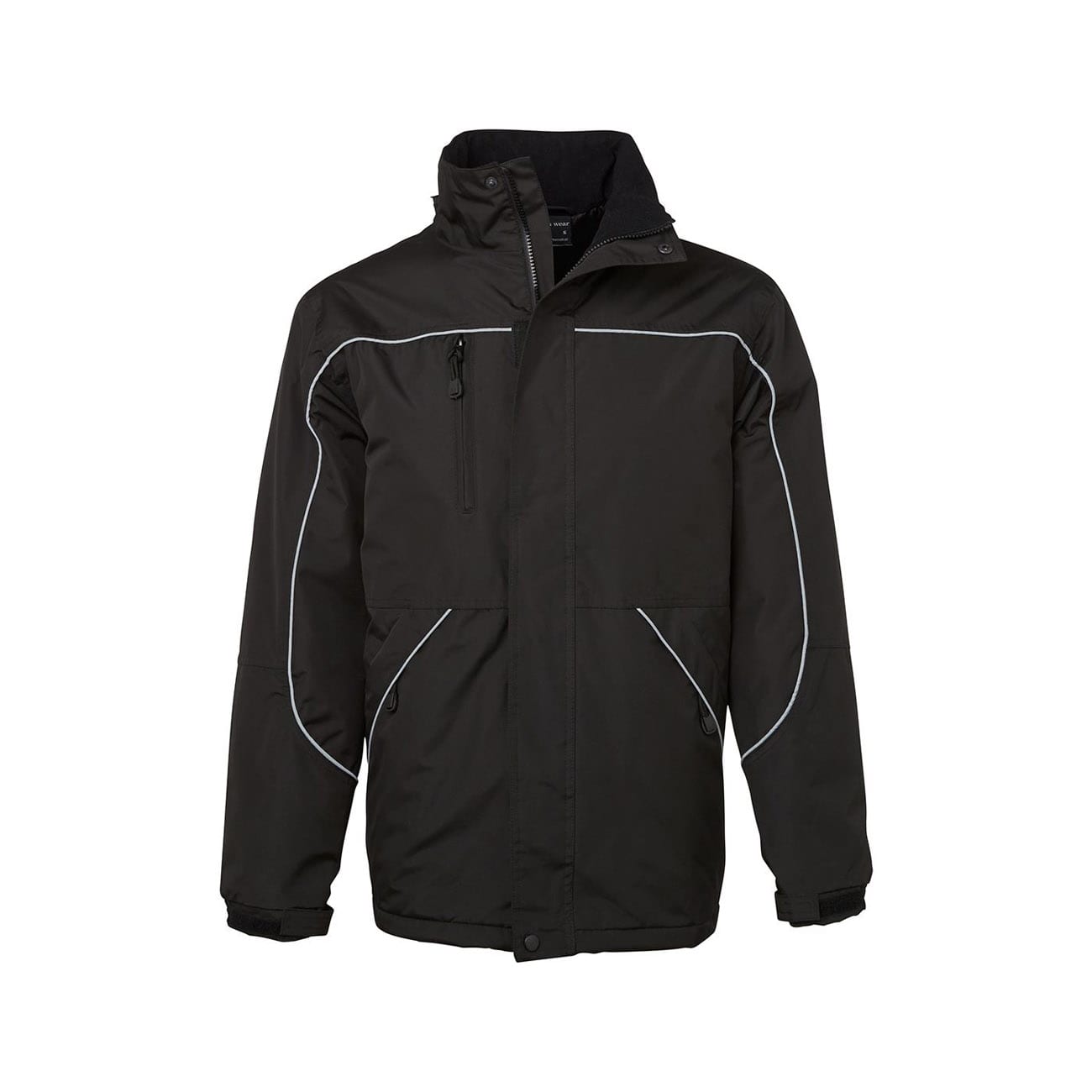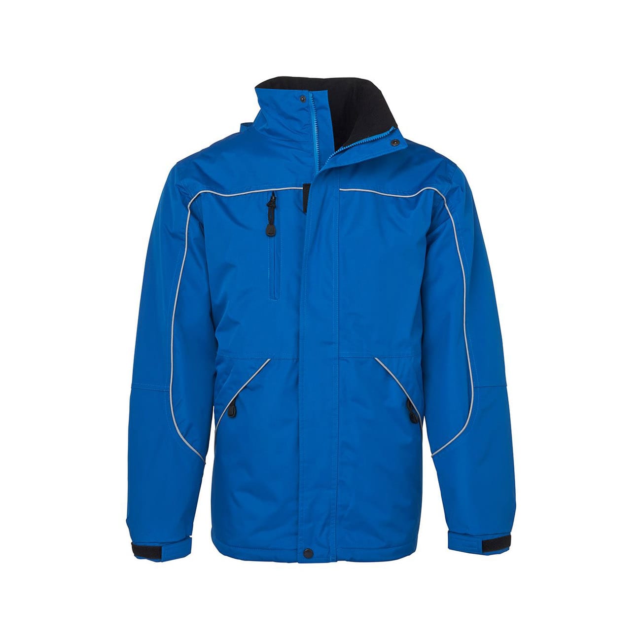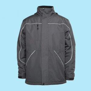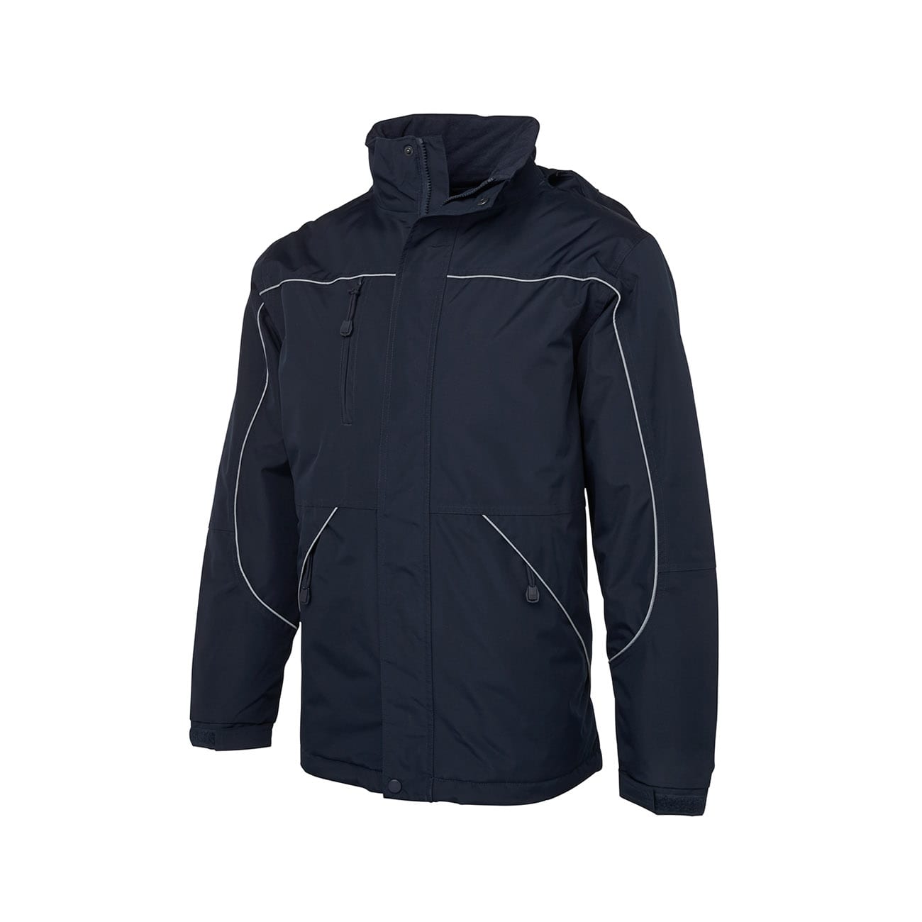 - Removable hood with neck protector, internal storage pouch and adjustable elastic hem with toggles