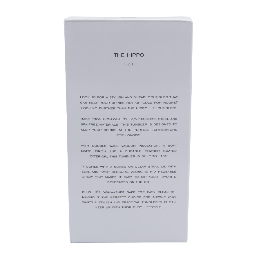 The 1.2L Hippo Bottle will keep you hydrated all day long. This doubled walled bottle is built to hold your favourite cold and hot beverages, keeping them hot and cold for hours. Each bottle is strong and durable, from its handle to a convenient screw-on clear straw lid with a twist closure. The Hippo Mug also features a straw & topper for added convenience and cleanliness, providing you with the option of drinking with or without the removable straw”