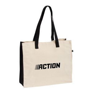 100% Cotton bag with a large main compartment, internal pocket and 260mm drop handle. Supplied in polybag.