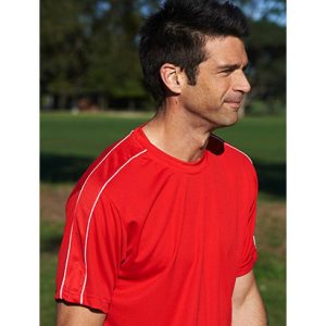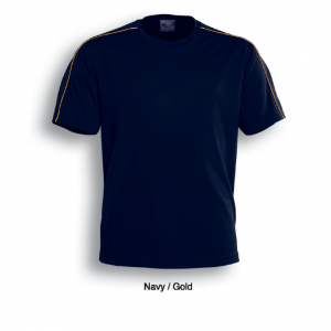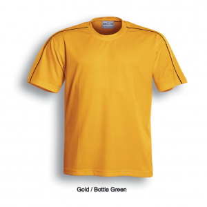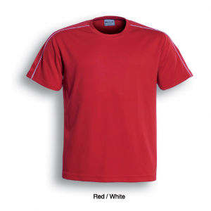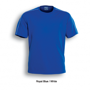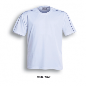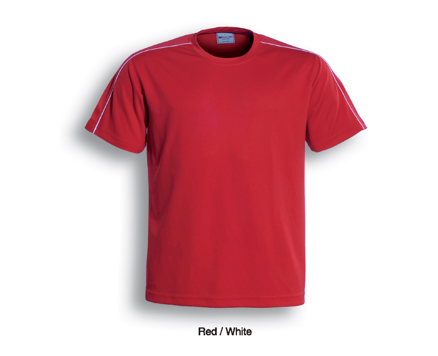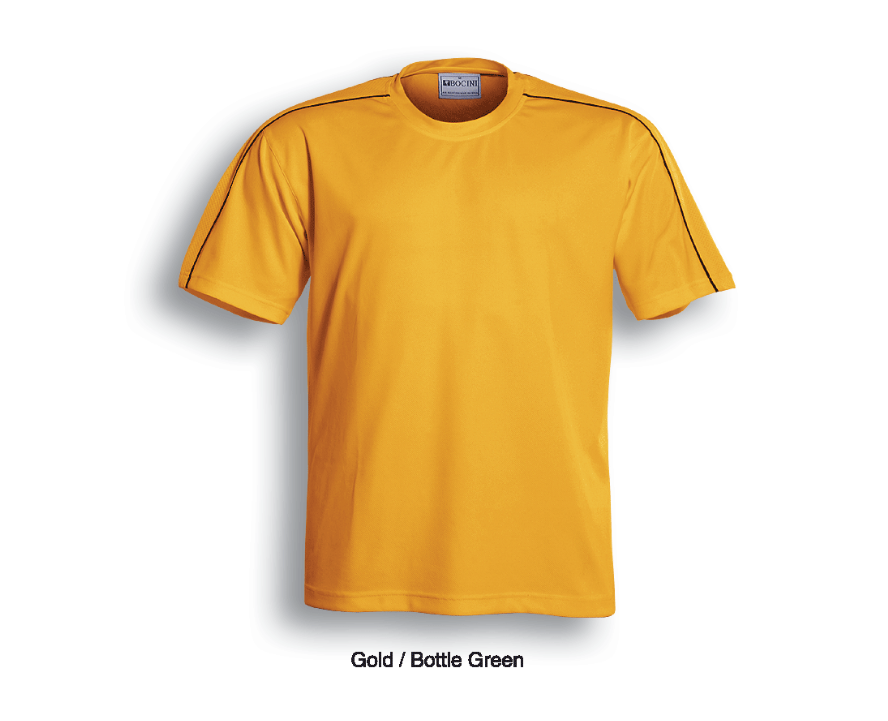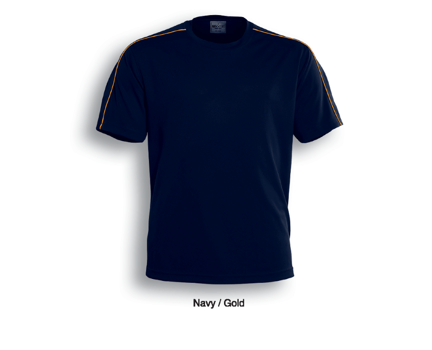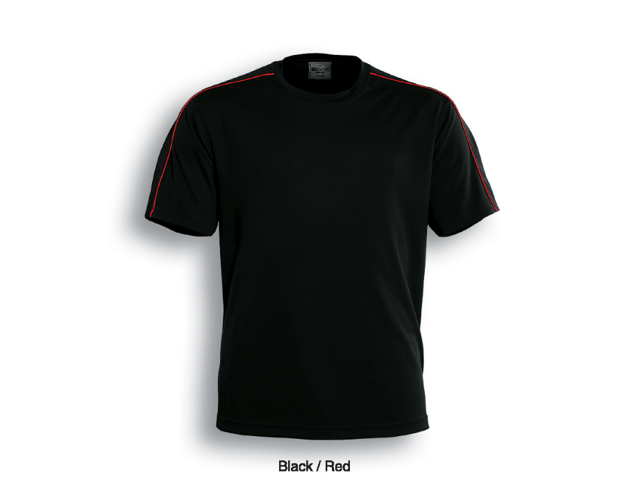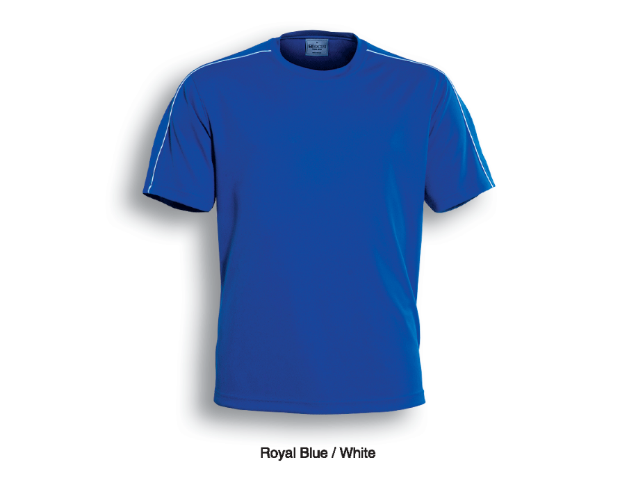 Unisex Cut Round Neck Tee With Contrast Piping And Honey Comb Panels Accross The Shoulders.